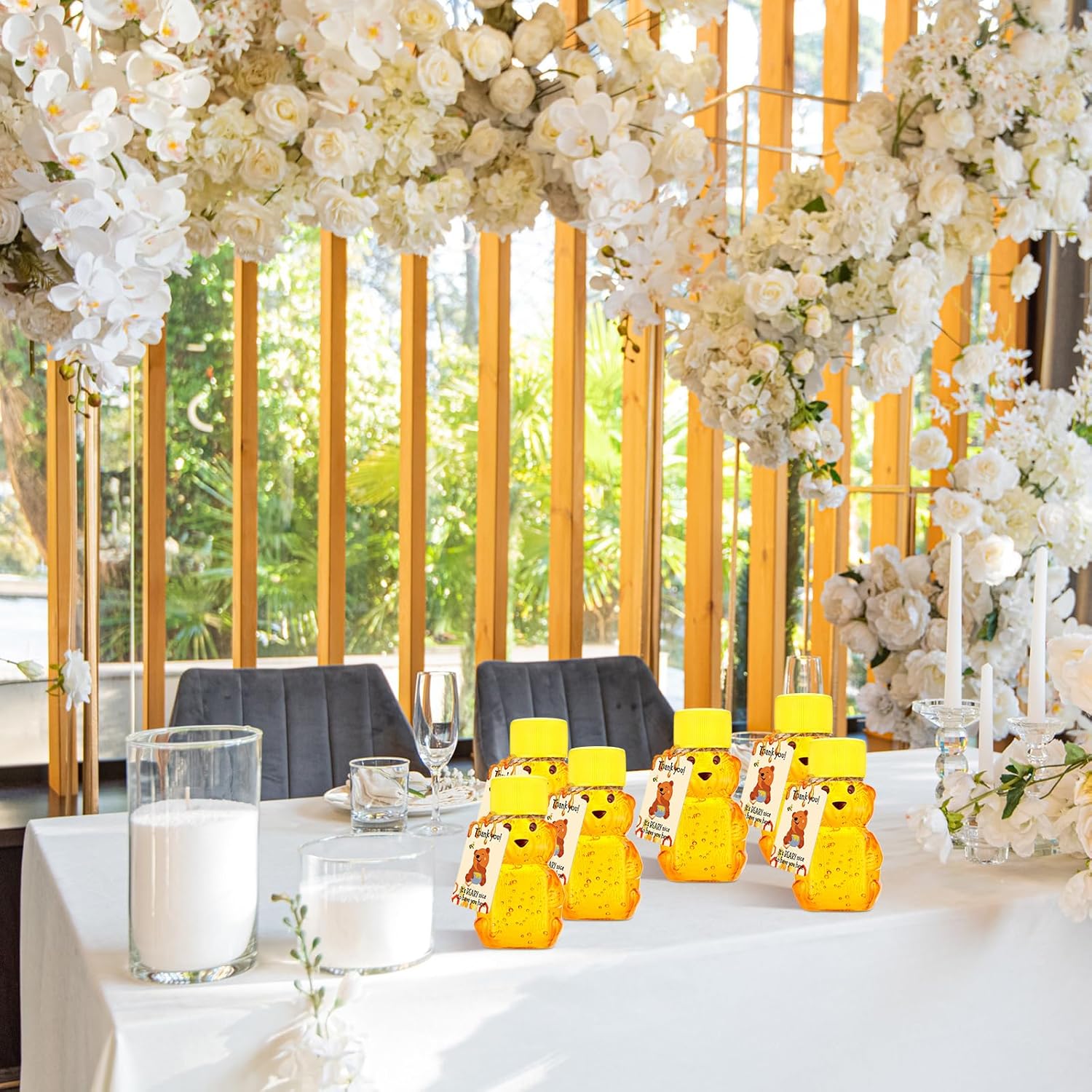 - Lovely Plastic Honey Bear Bottle: the package includes 96 plastic honey jars with yellow lid, about 2 oz/ 60 ml, 96 tags, and 2 rolls of rope (about 22 yd/ 20 m per roll); The proper size makes them adorable and attractive at your party, and you can share them with your family