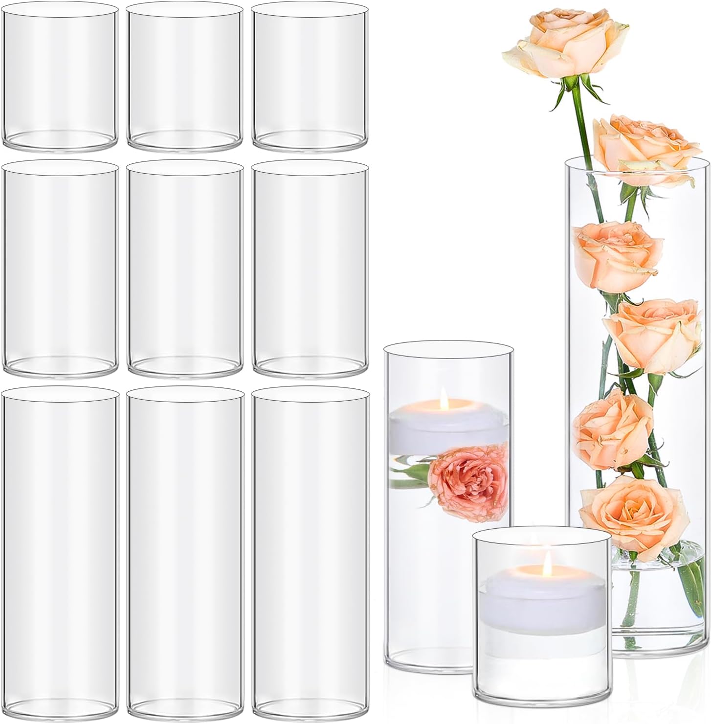 - Product Specifications:You will get 12 pack clear glass vases, are made of high-quality glass, smooth bottle mouth edge and a stable bottom. The diameter of the cylinder vases is 3.5 inches, different heights are 4, 8, 12 inches, with 3 sizes for various combinations, can be meet your different needs, is a perfect table centerpiece