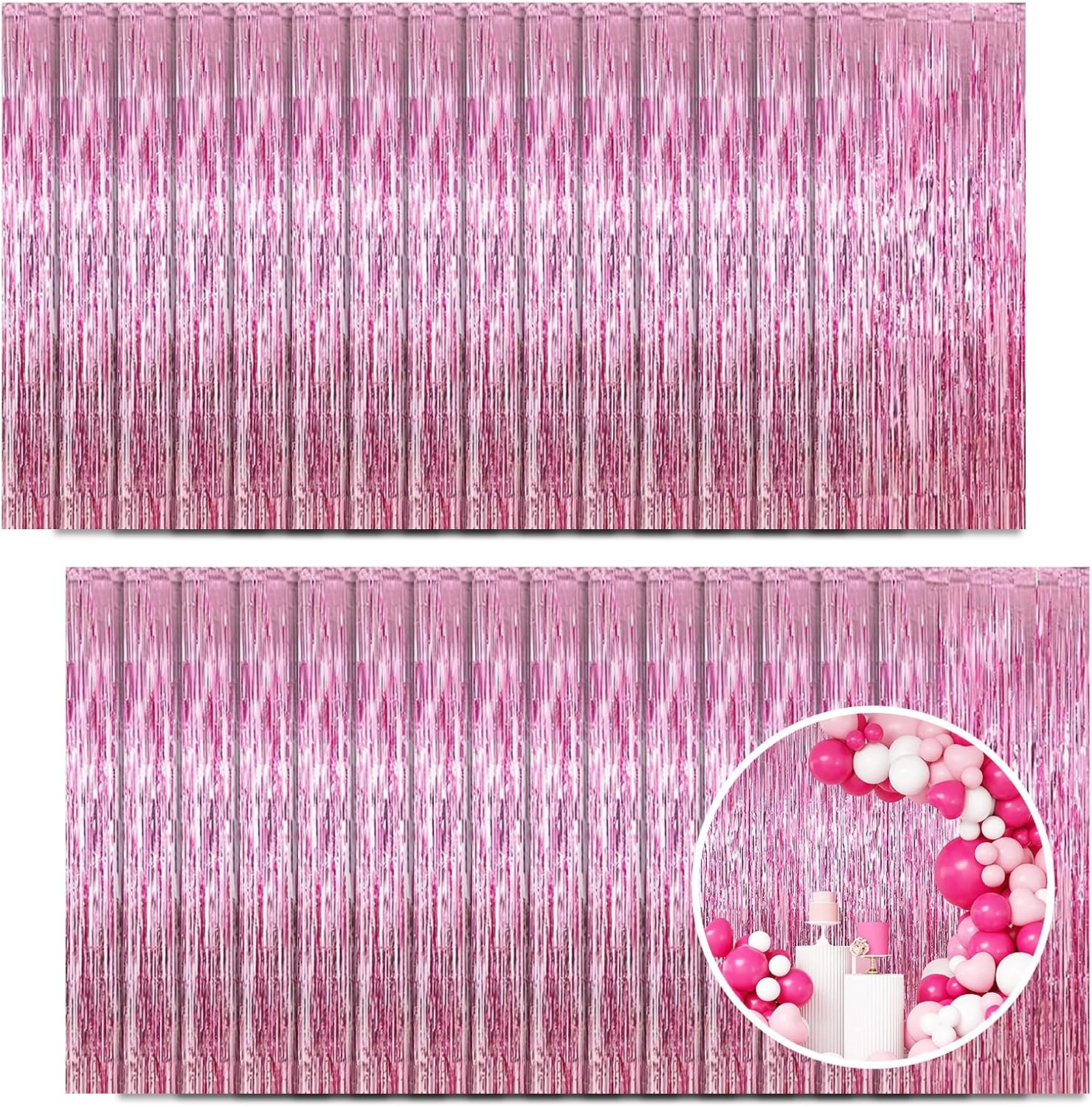 30 Pack Pink Foil Fringe Curtain Backdrop, 3.3x8.2 Feet Metallic Tinsel Streamer Curtains Photo Booth Props for Wedding/Birthday/Baby Shower/Valentine's Day/Princess Themed Party Decorations