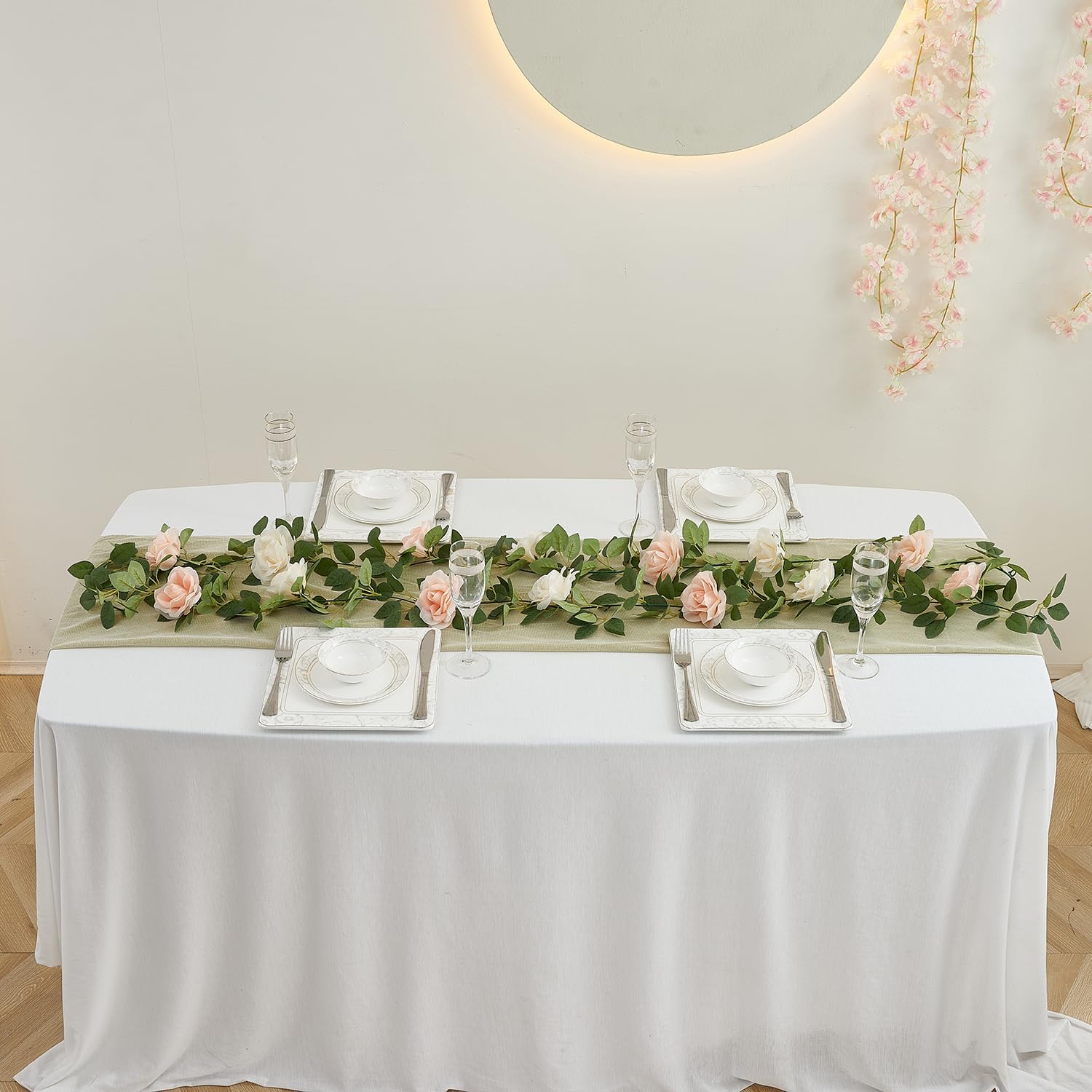 - 【PACKAGE INCLUDED】Package include 2PCS flower garland. Each floral garland contains 7pcs big flowers with some roses leaves, they are perfect for wedding decor,decorating tents, enchanted forest decorations, birthday party decoration, baby party decorations.