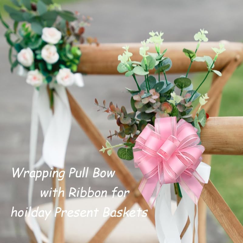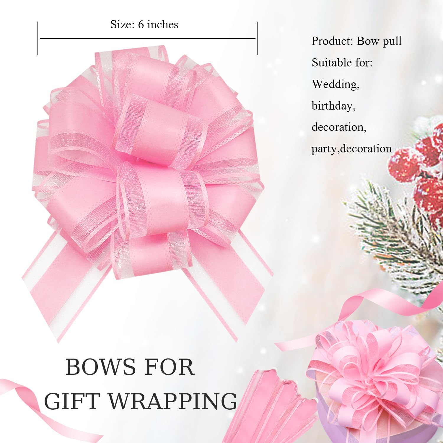 6 Pieces Large Pull Bows,6 inches,Bow for Gift Wrapping,Pull Bows for Party Birthday Gift Wedding Baskets Gift Decorations, Flower Decorations (Pink)