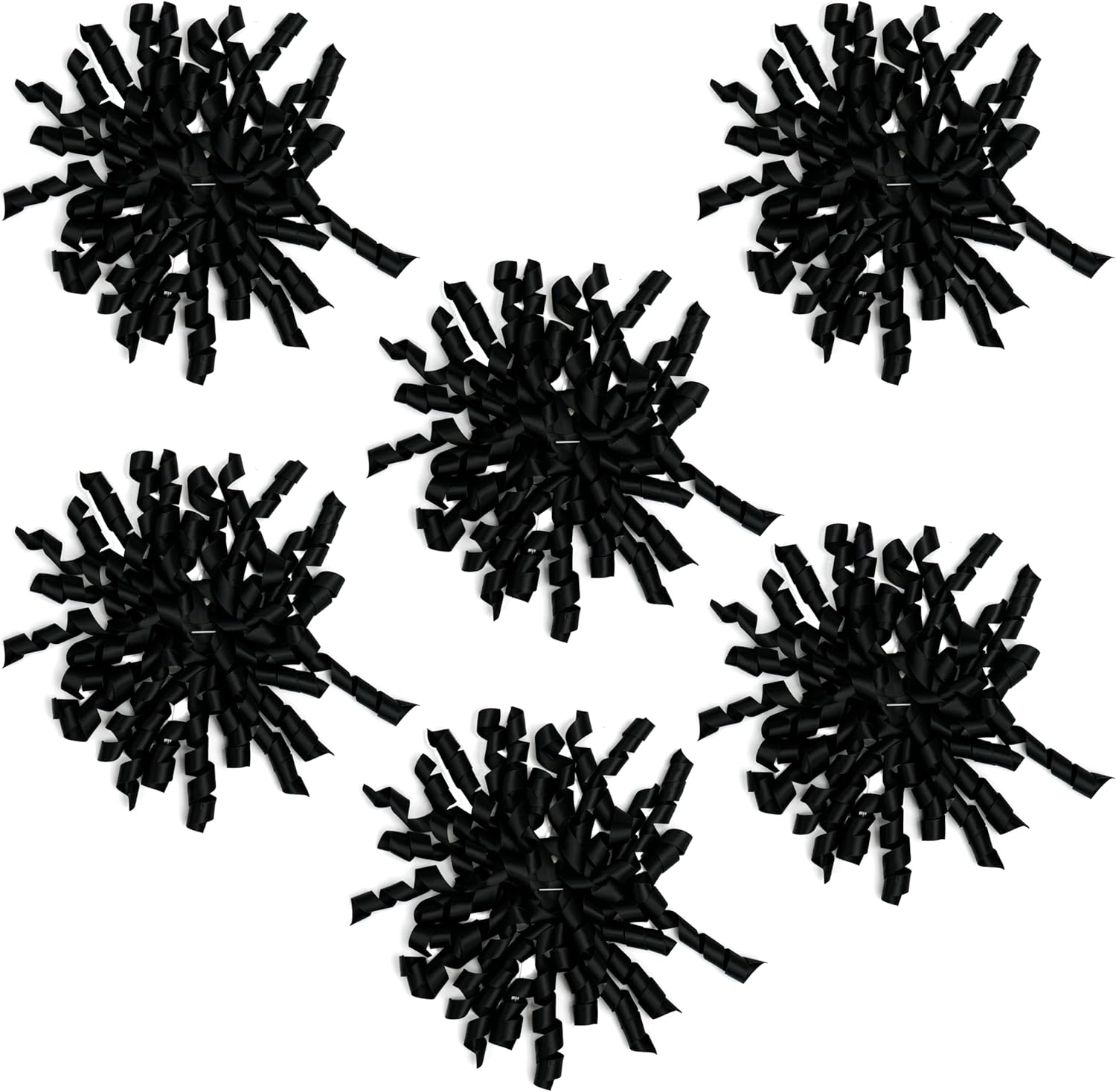 6 Inch Black Curly Bows for Gift Wrapping Set of 6, Self Adhesive Bows Black Gift Bows for Presents, Satin Ribbon Bows for Birthday, Wedding, Christmas, Bridal Shower, Gift Wrap Accessory