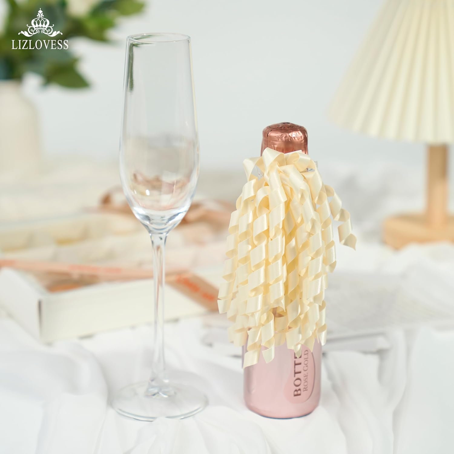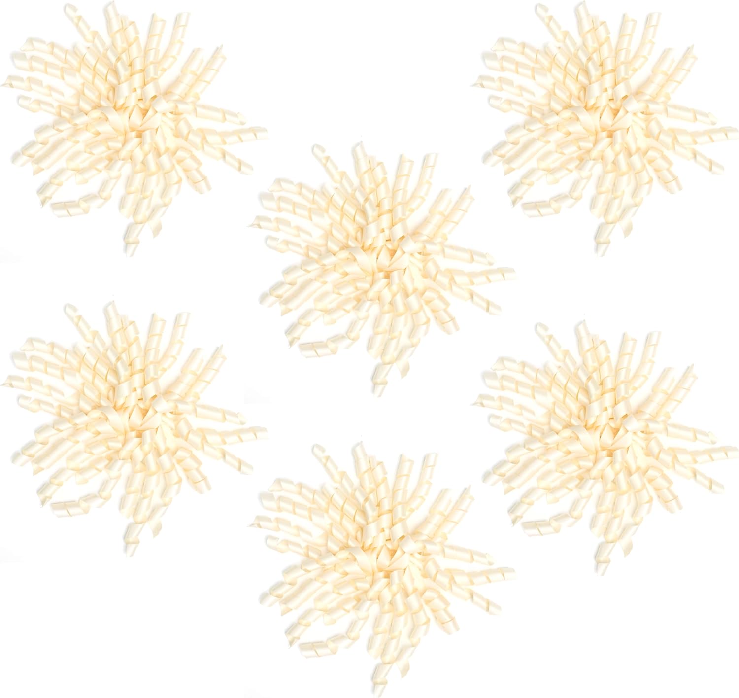6 Inch Ivory Curly Bows for Gift Wrapping Set of 6, Self Adhesive Bows Ivory Gift Bows for Presents, Satin Ribbon Bows for Birthday, Wedding, Christmas, Bridal Shower, Gift Wrap Accessory