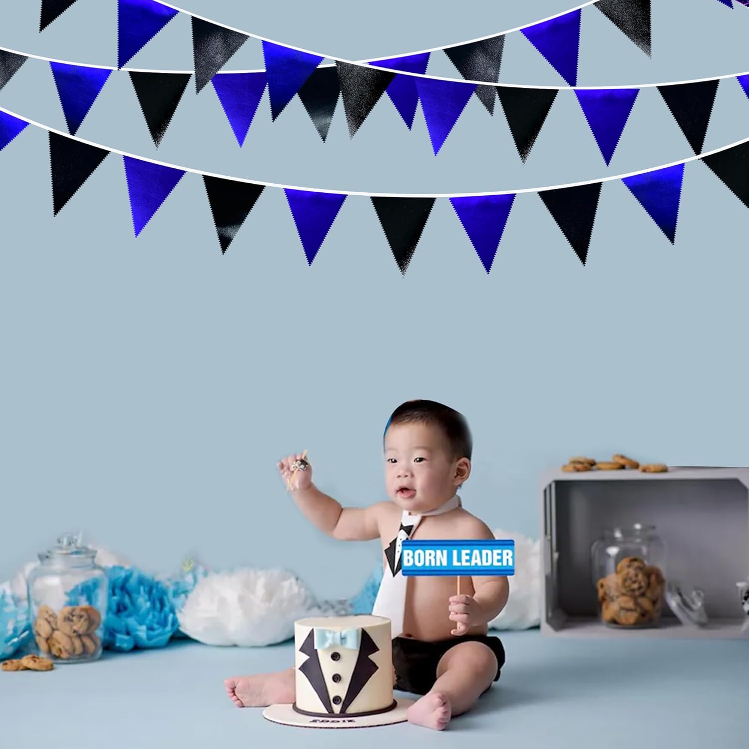 - Package Contains - 1 packs of navy blue and black party metallic fabric pennant flag, Total 9.75meter/32feet with 36pcs flags.Size of each flag is 7.9 x 5.9 inch.