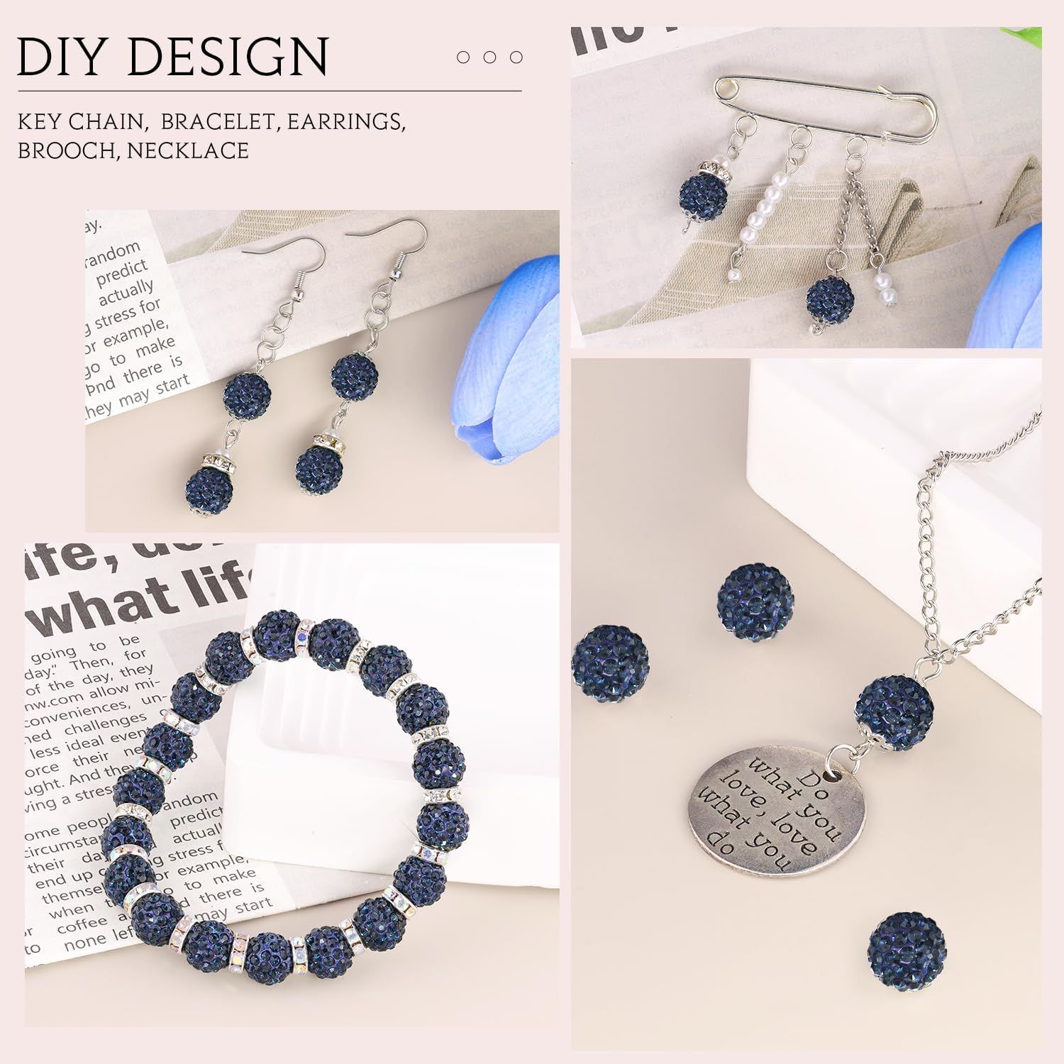 100pcs 10mm Rhinestone Beads for Jewelry Making, Blue Black Shiny Round Shamballa Disco Ball Beads Bulk, Sparkle Crystal Clay Christmas for Bracelet Baseball Necklace Earring Crafting and DIY