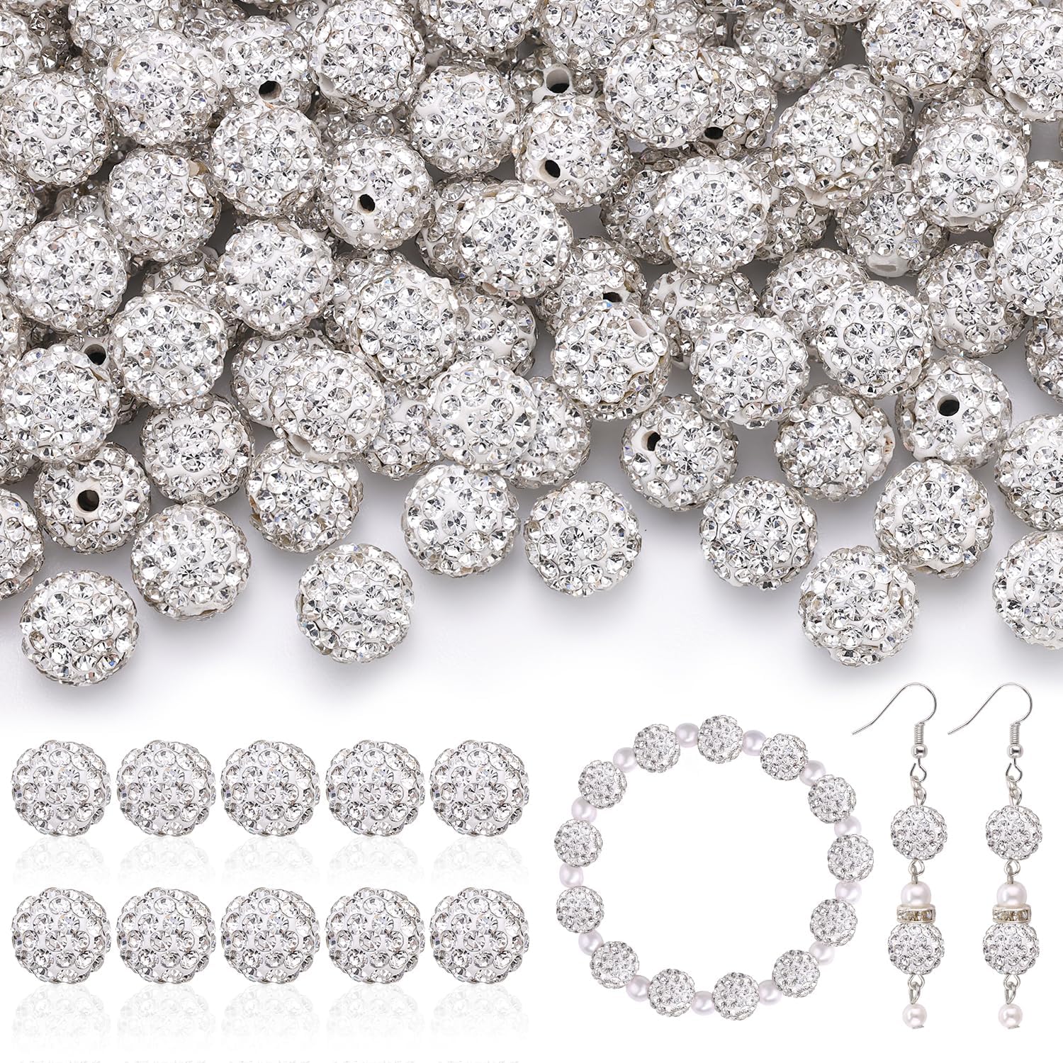 160pcs 10mm Rhinestone Beads for Jewelry Making, White Shiny Round Disco Ball Beads Bulk, Sparkle Crystal Clay Christmas for Bracelet Baseball Necklace Earring Crafting and DIY