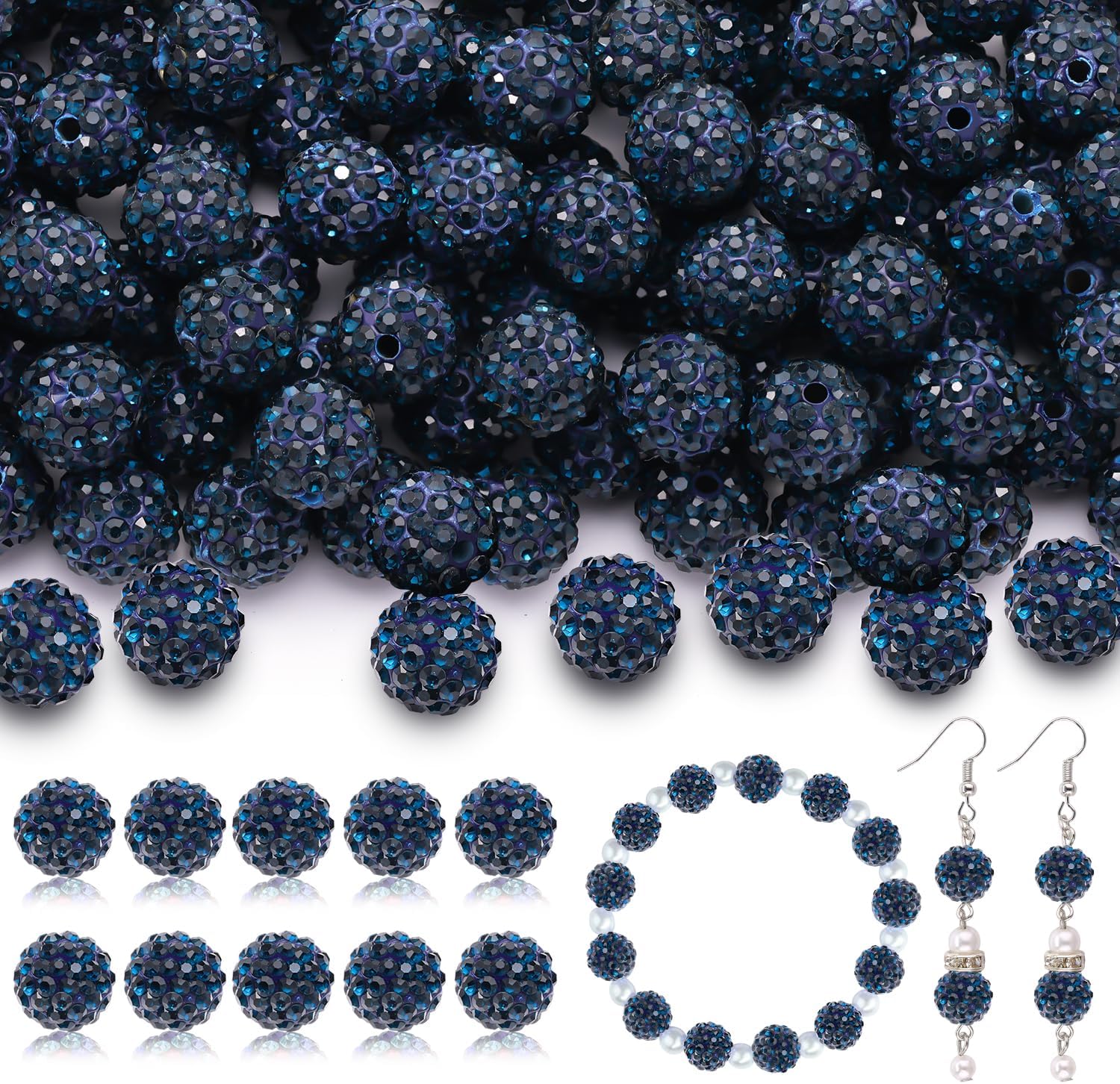 160pcs 10mm Rhinestone Beads for Jewelry Making, Blue Black Shiny Round Disco Ball Beads Bulk, Sparkle Crystal Clay Christmas for Bracelet Baseball Necklace Earring Crafting and DIY