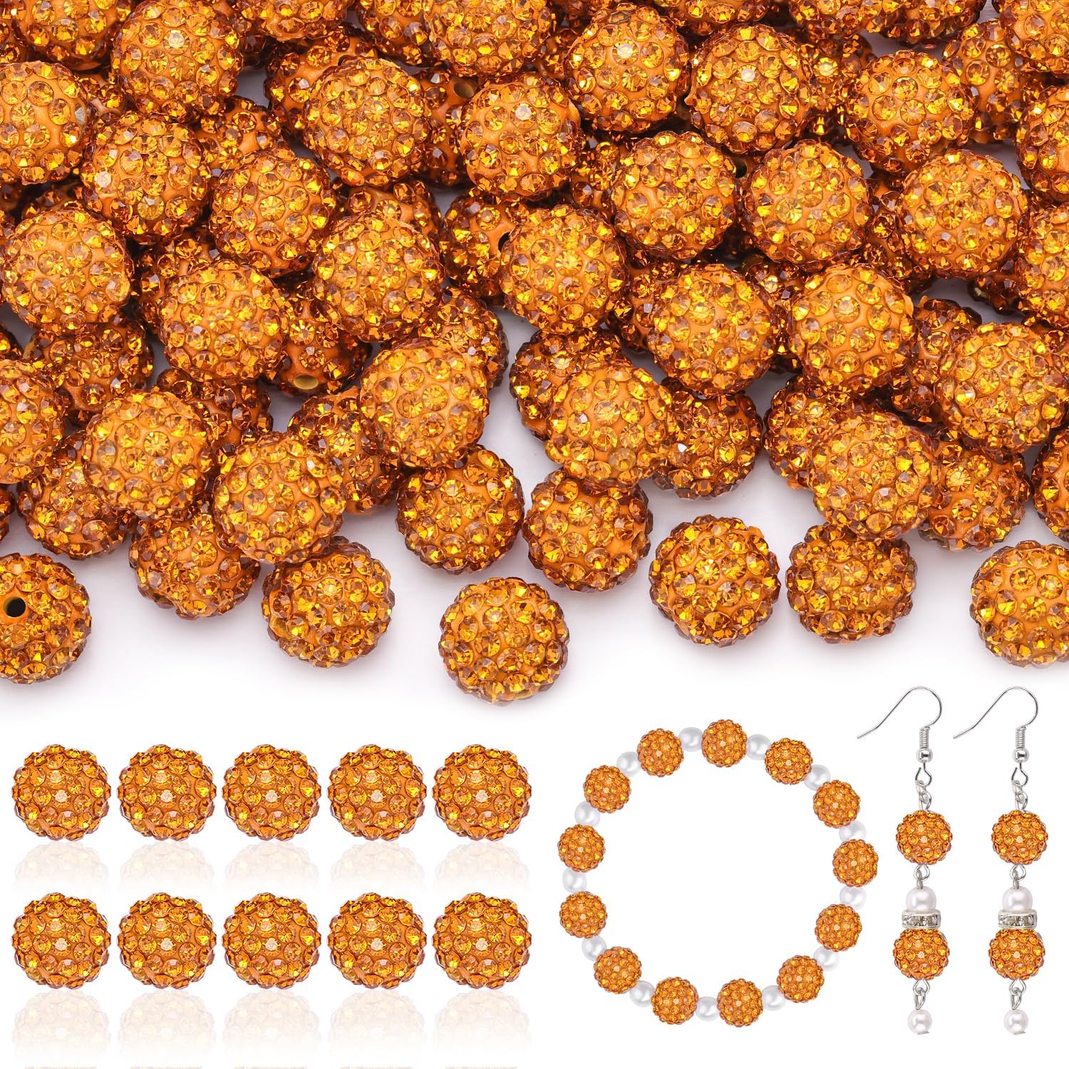 200pcs 10mm Rhinestone Beads for Jewelry Making, Golden Shiny Round Disco Ball Beads Bulk, Sparkle Crystal Clay Christmas for Bracelet Baseball Necklace Earring Crafting and DIY