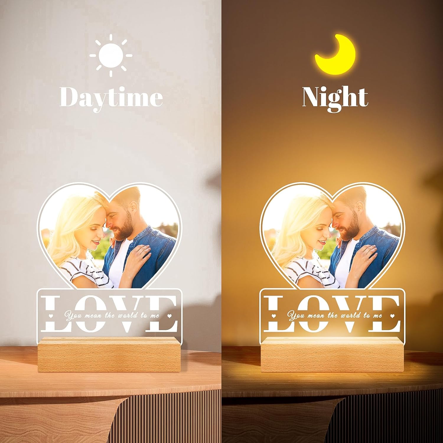 Personalized Gifts for Women Men Him Her, Custom Picture Frames with Photo, Customized Photo Frame with Night Light, Personalized Anniversary Couple Gifts for Boyfriend Girlfriend