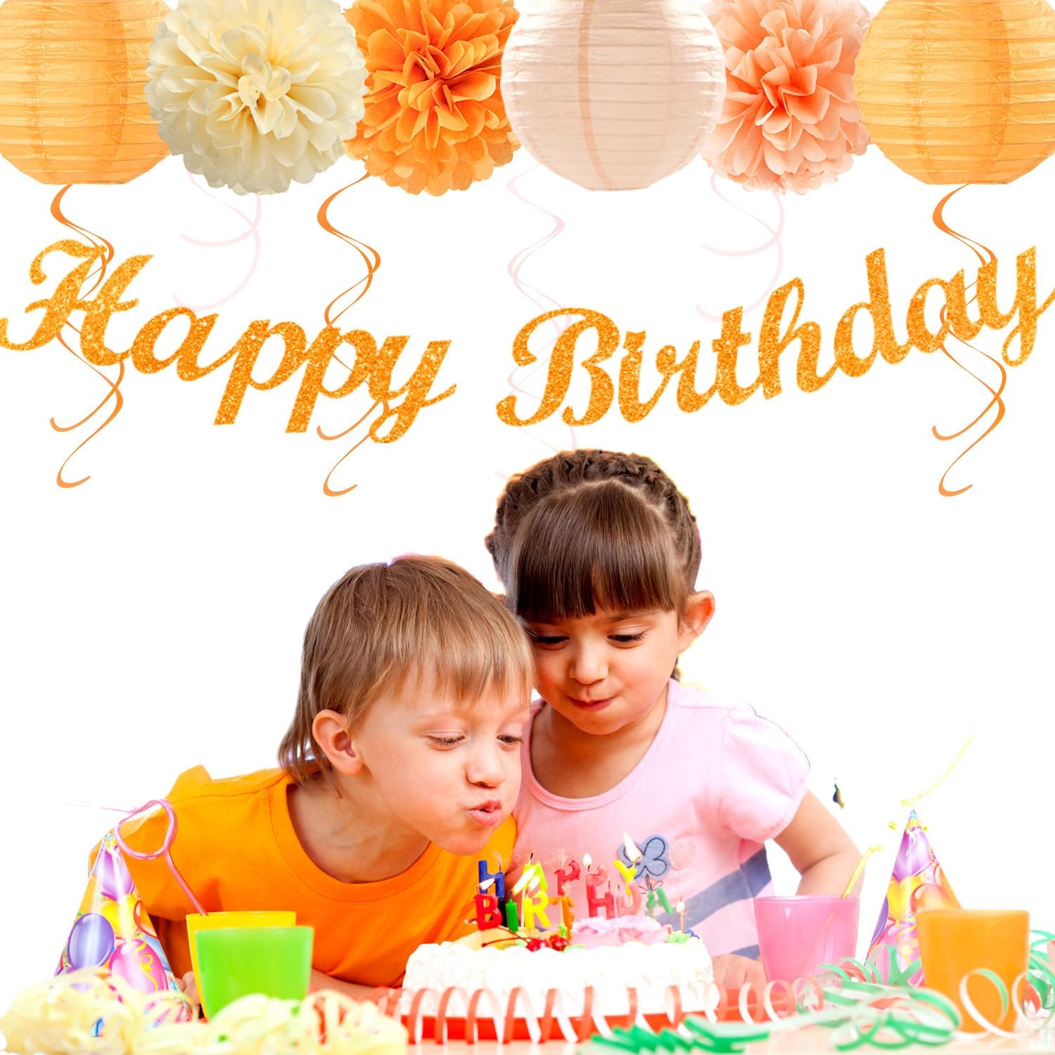 - 【Orange beige peach pink Birthday kits】This kits include 1pcs happy birthday banner, 1pcs circle dots paper banner, 4pcs tissue pom poms: 3pcs 10" and 1pcs 12" , 3pcs 8inch paper honeycom ball, 2pcs 8inch paper lantern, 4pcs 12inch paper flower fan, 6pcs Paper swirls hanging streamers