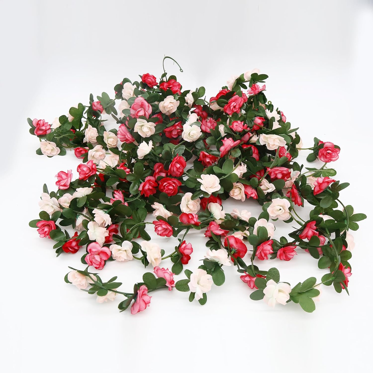 - Material: Rose floral garland is handmade from silk and plastic. The vine is soft and brightly colored, and can be bent, cut, and hung as needed
