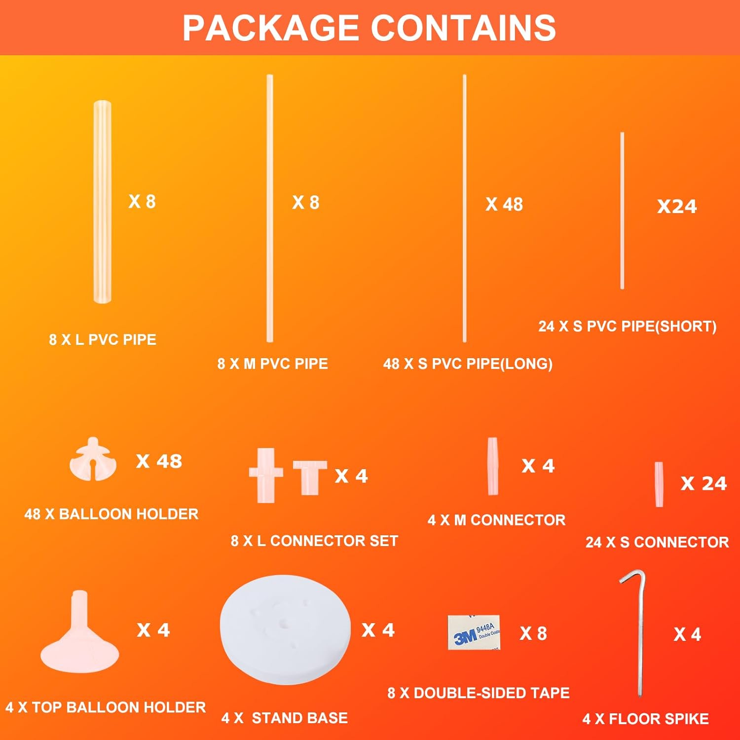 - Package Included - Complete Set for Your Convenience: Our KATBUU balloon arch kit includes 4 sets of balloon stands, featuring 88 unattached balloon tubes, 52 balloon holders, 8 seven-hole connectors, 28 connectors, 4 water-filled base, 4 floor spike, 8 double-sided tape, and 1 set of user instructions. No need for a rental helium tank - create stunning balloon displays right at home. This is sure to make your PARTY special.