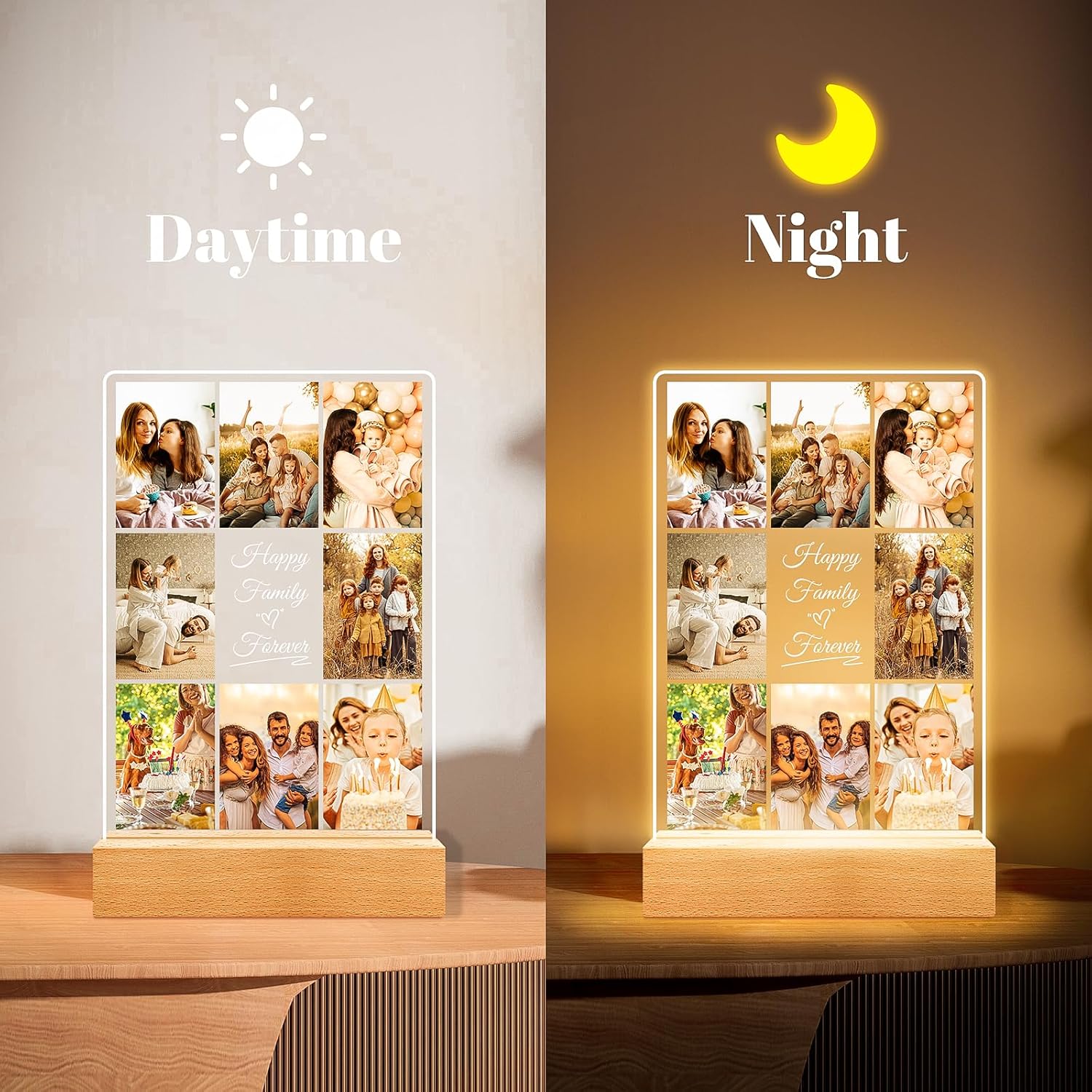Personalized Collage Picture Frames with Photos, Custom Photo Frame with Night Light, Customized Birthday Gifts, Personalized Gifts for Women Men Mom Dad Kids Baby Family Friends