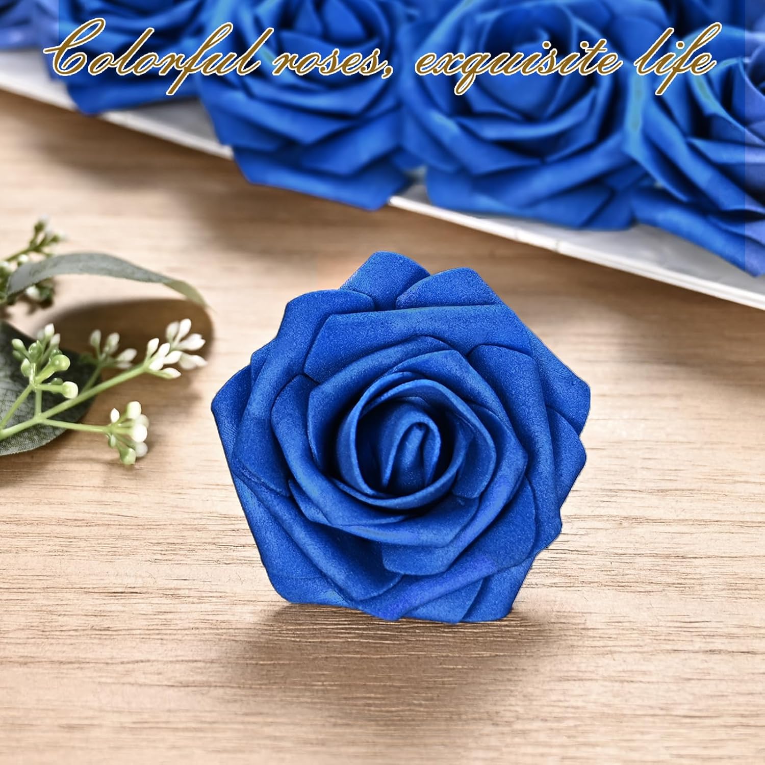 - Kindle Your Creative Flames: The box includes 16 royal blue roses (3" flower head, 8" stem) and 4 green rose leaves, perfect for an array of DIY crafts. Whether creating wedding bouquets, graduation or birthday party ornaments, baby shower decorations, or cake adornments, our faux roses add a touch of class to every important moment.