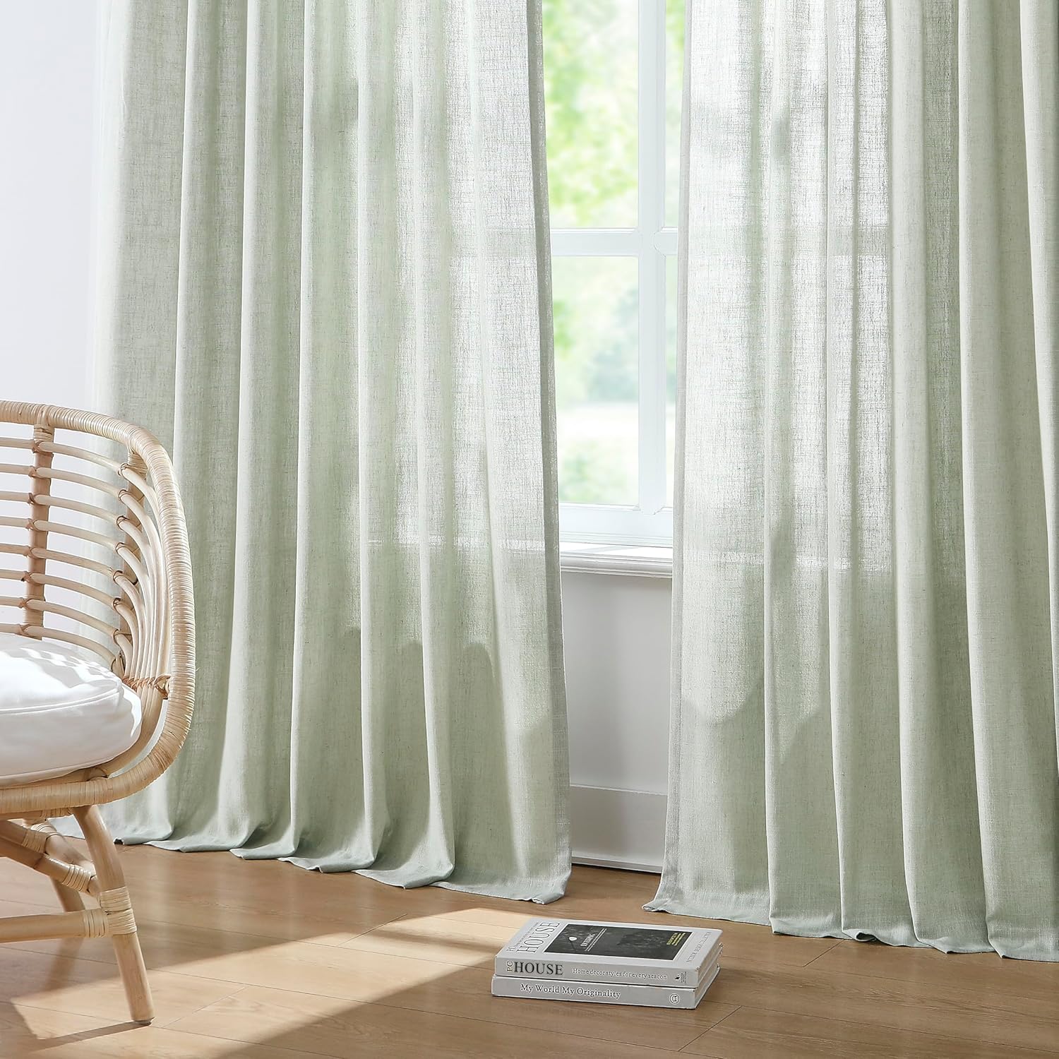 - Pinch Pleats Design:Each pale green curtain panel with 10 pinch pleats generates modern and luxury feel.Linen curtains provide a natural,and textured look that complements a variety of interior styles.By offering linen curtains in various colors,patterns,and lengths,we can cater to customers looking for a casual yet sophisticated window treatment.Hanging these pinch pleat curtains to elevate your windows and increase the aesthetic value to any spaces,bedroom,living room,nursery,office,etc.