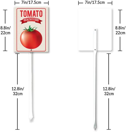 - [Extra large size] The plant tags total height 21.6", Width 7โ , Thickness is 0.07". The extra large size of the label makes the graphics are easy to read and attractive. Ther are thick, tall, and sturdy, and go into the ground easily