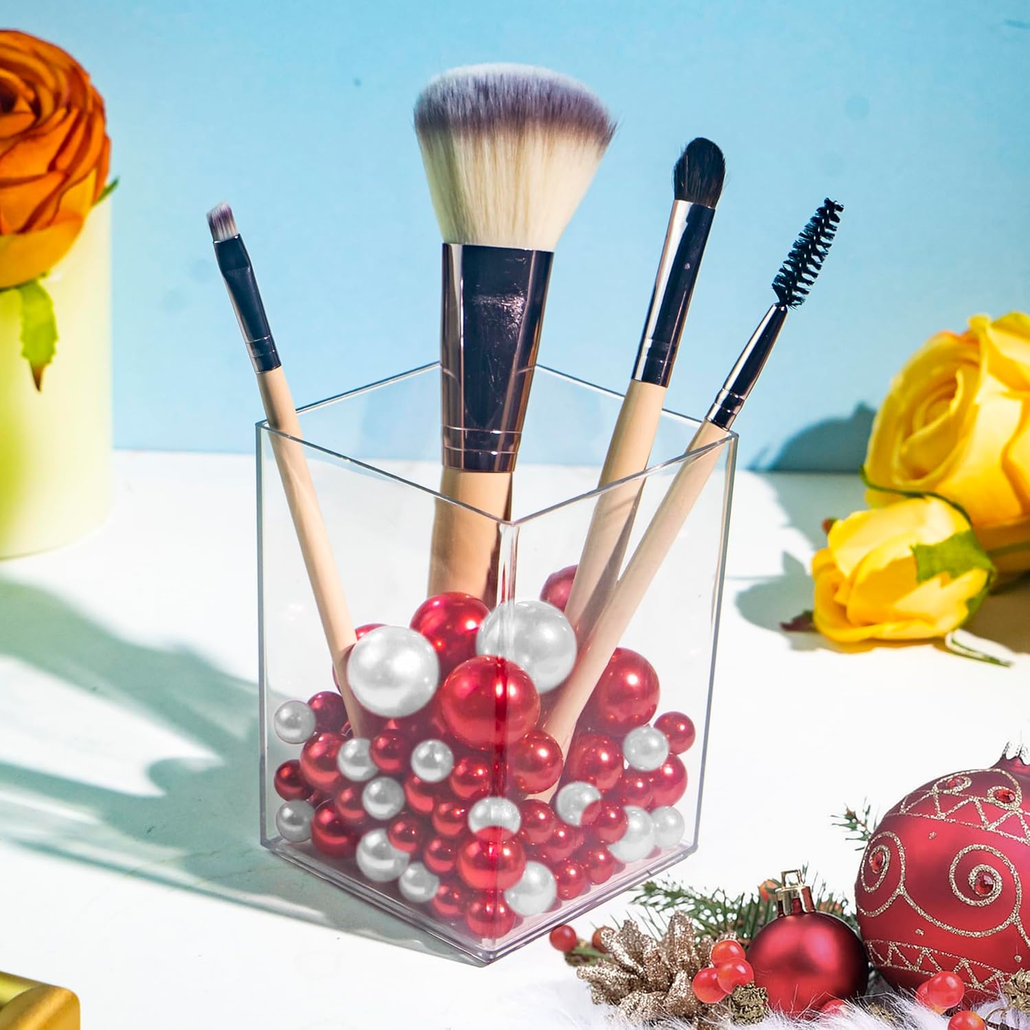 300Pcs Red&White Polished No Hole Pearl Beads Vase Filler, Christmas Vase Filling Decorations, Plastic Pearls, Table Scatters, Wedding Home Decor, 8/14/20 mm