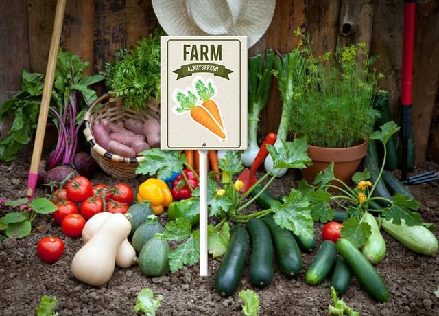 - [Extra large size] The plant tags total height 23.6", Width 8โ , Thickness is 0.07". The extra large size of the label makes the graphics are easy to read and attractive. Ther are thick, tall, and sturdy, and go into the ground easily