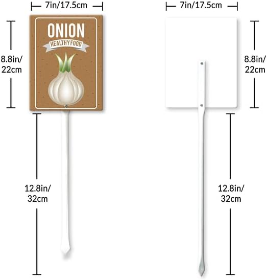 - [Extra large size] The plant tags total height 21.6", Width 7โ , Thickness is 0.07". The extra large size of the label makes the graphics are easy to read and attractive. Ther are thick, tall, and sturdy, and go into the ground easily