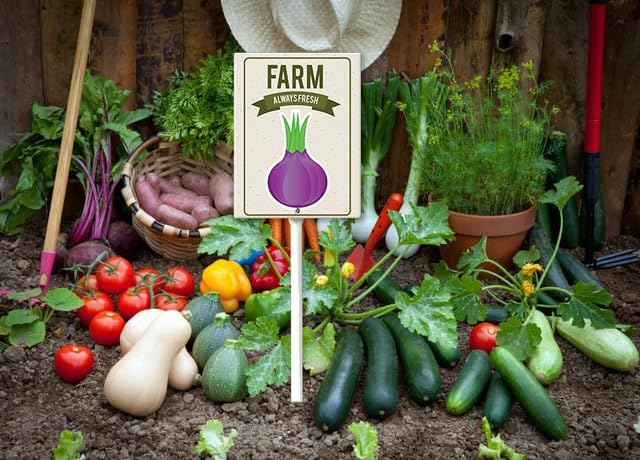 - [Extra large size] The plant tags total height 21.6", Width 7โ , Thickness is 0.07". The extra large size of the label makes the graphics are easy to read and attractive. Ther are thick, tall, and sturdy, and go into the ground easily