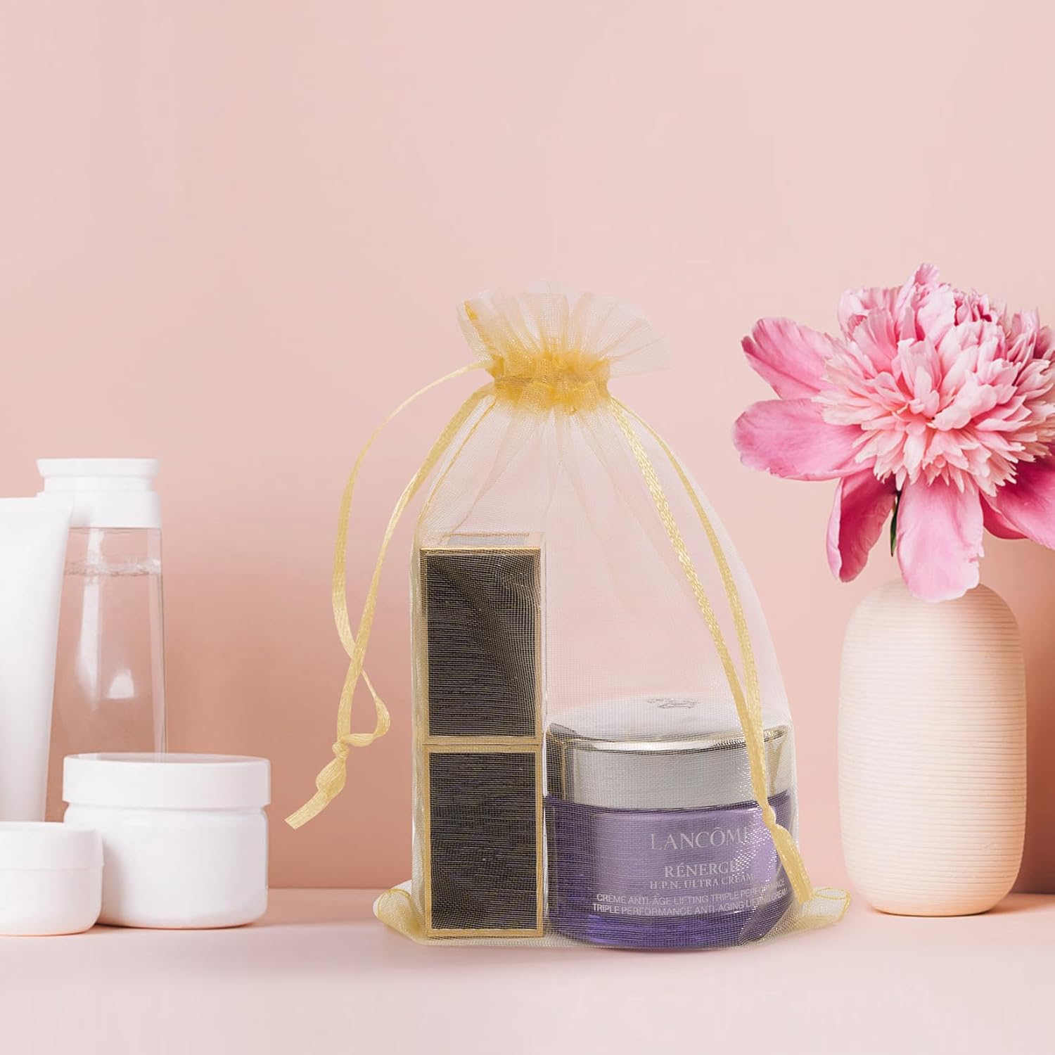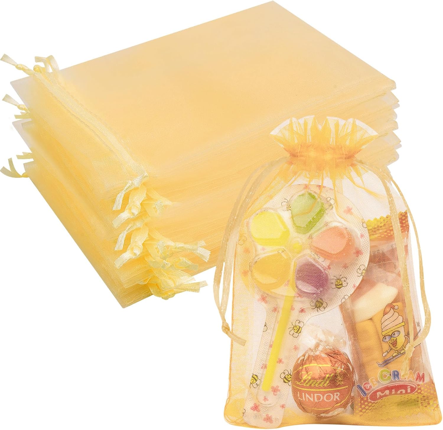 Organza Bags 4x6 Inch 50 Pack Small Mesh Gift Bags Drawstring for Candy Party Favor Wedding Baby Shower(Gold)