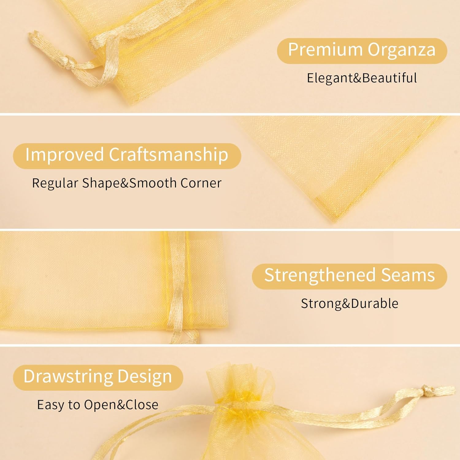 - Package Details: Package comes in 50 pcs gold organza bags, with a size of 4x6 inch, offering a practical and stylish solution for organizing and presenting small items.