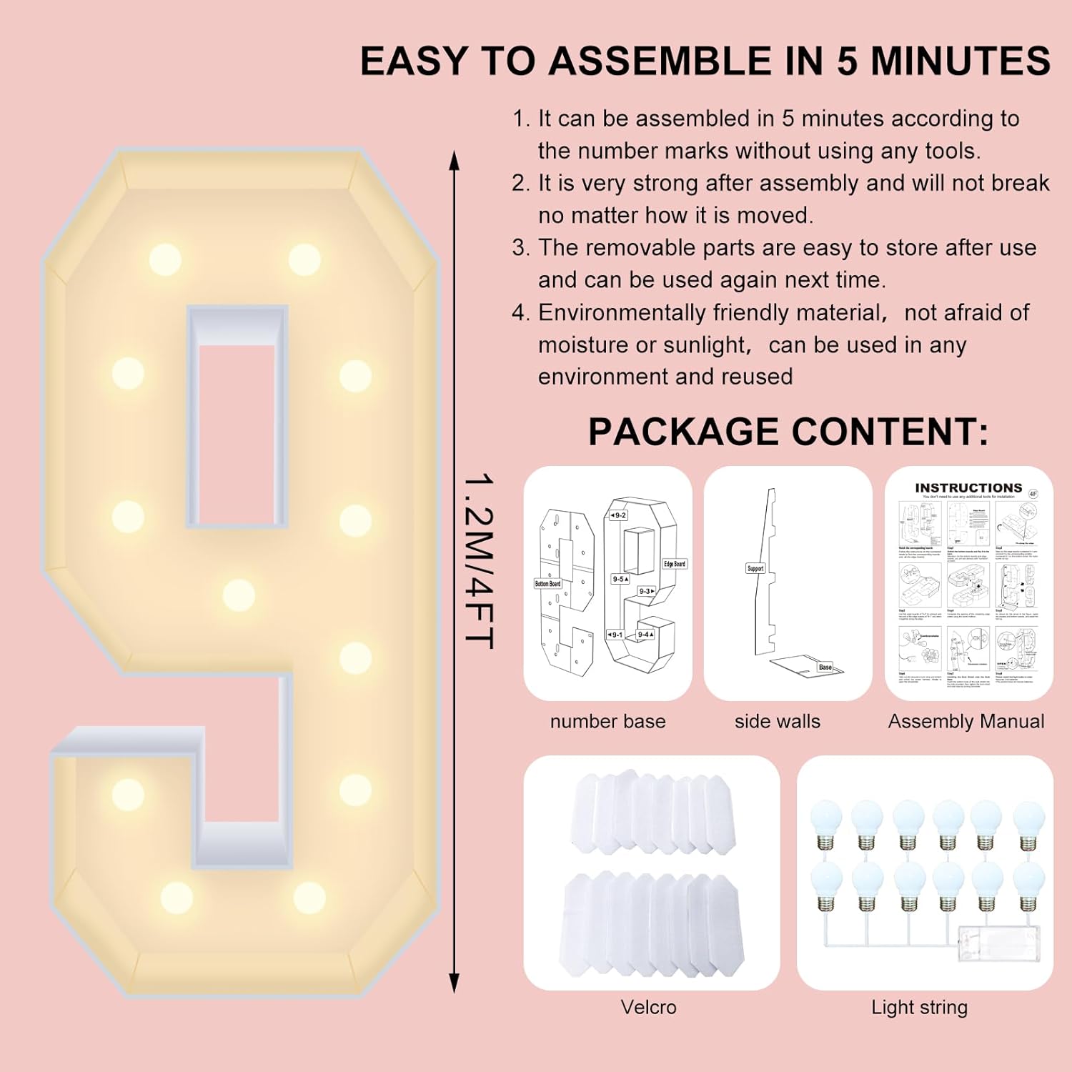 - Quick and Easy, No Tools Required: You can easily assemble marquee numbers 4 feet tall! Made of Corrugated plastic board, it is waterproof and sturdy in structure. Just align the same number parts, and the installation can be easily and quickly completed without any tools, ensuring that you can easily prepare for your party.