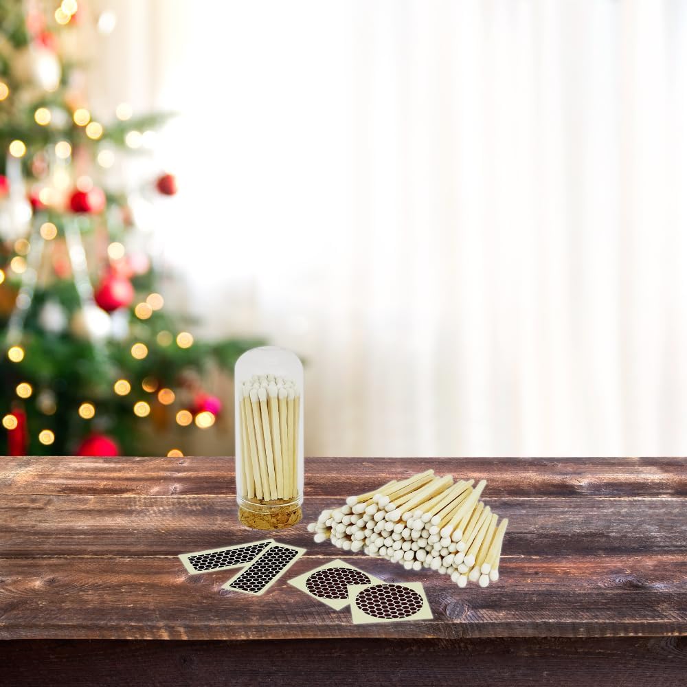 - Show off your choice of colored matches - set comes with 3 mini cloche glass bottles with cork top (2 3/4" tall, 1 1/5" wide), 100 matchsticks (~35 per bottle), striker stickers included (more than anyone else!). Arrives in giftable and eco-friendly packaging. 20+ colors to choose from - click “customize now” to view the options