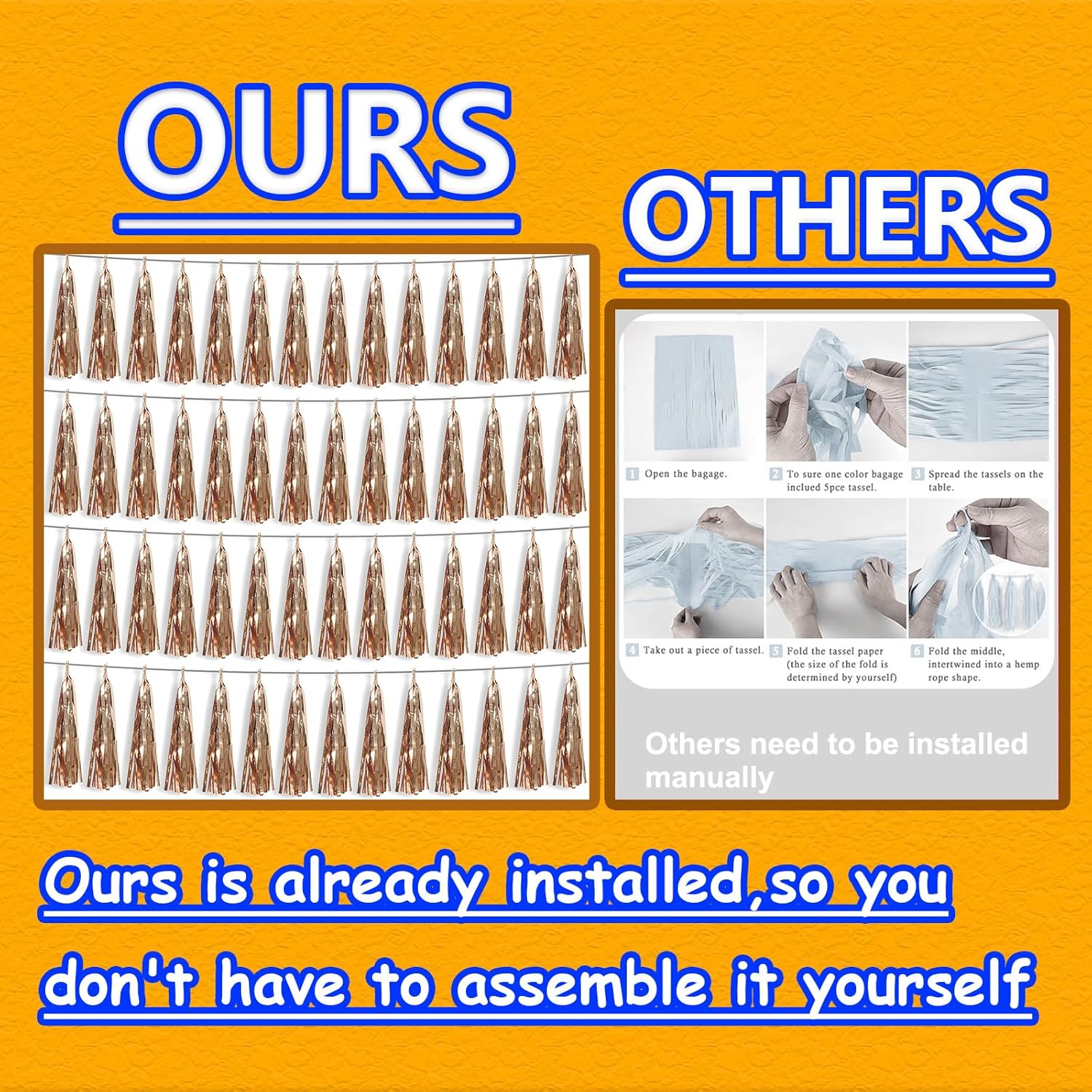 - 【Premium Reusable Tassel Material】: Our glitter fringe garland is made of high-quality PET material, with the virtue of nice craftsmanship and light weight which is safe and recyclable. And the smooth touch makes tassels easy to tidy up. They come with white ribbon for hanging, and garland tassels hang perpendicular to the string, and are adjustable to provide you with the option of spreading the tassels out or piecing them closer together.