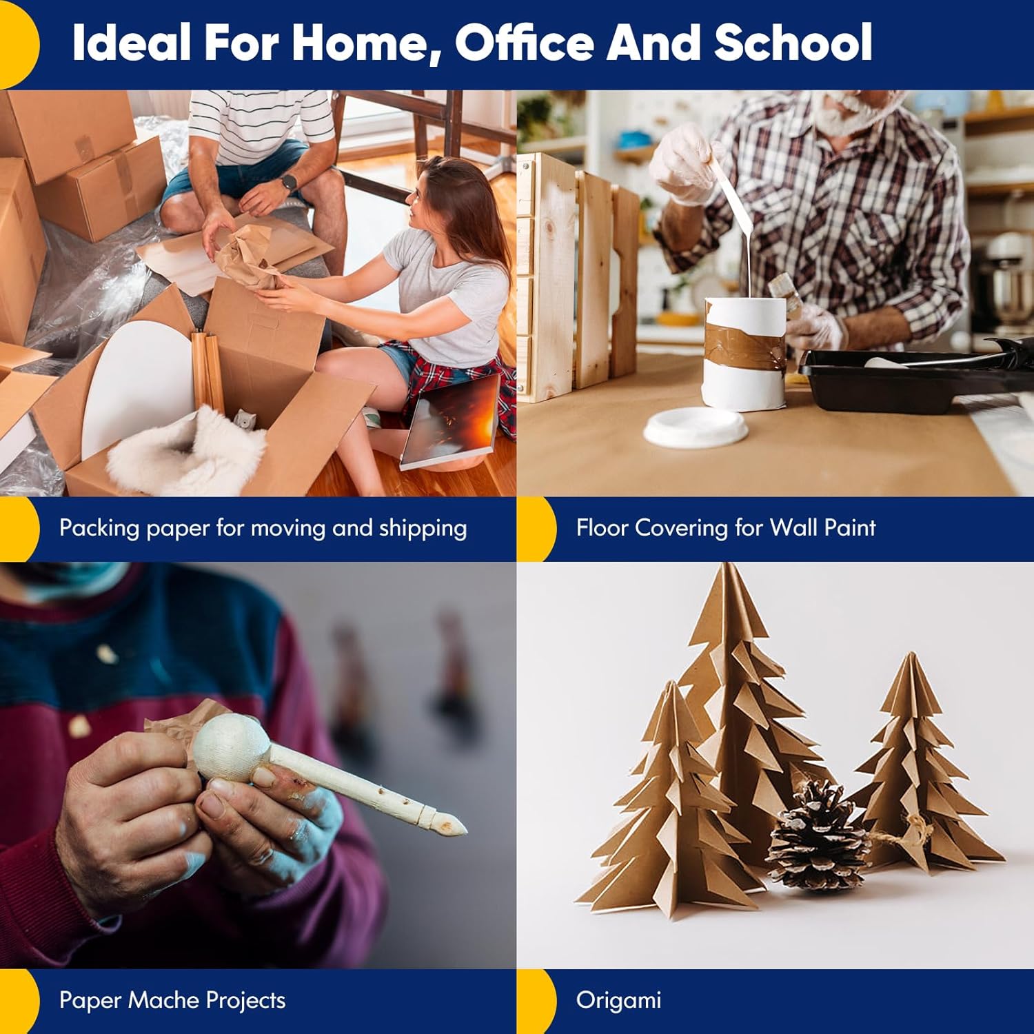 - 【Great Wrapping Paper for Home, School and Office Supplies】 Use it for wrapping Christmas, birthday, mother day, valentines day gifts or wedding gifts. Great as wrapping paper, craft paper, poster paper, packing paper for moving, kraft paper, brown paper roll, flower wrapping paper, bouquet wrapping paper, bulletin board paper.