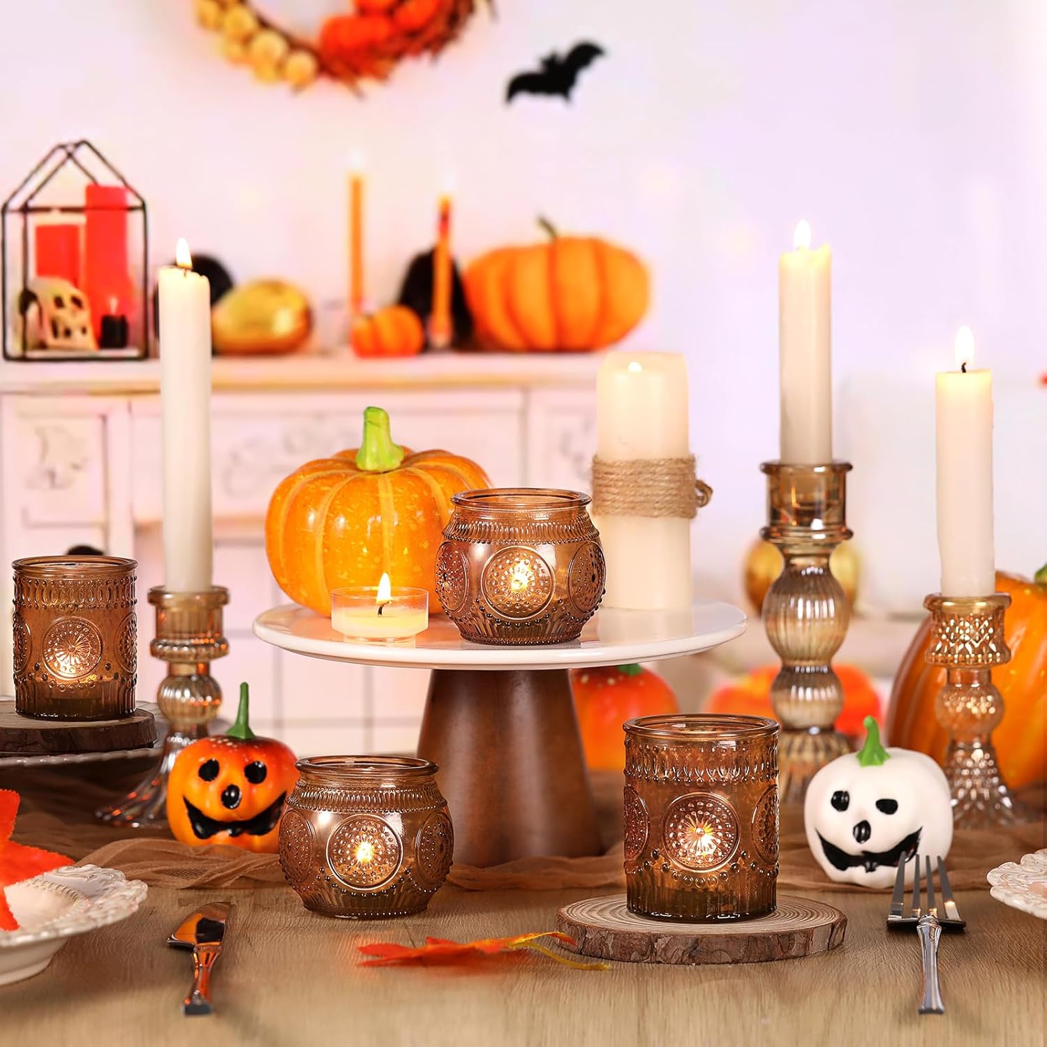 DARJEN 24Pcs Amber Votive Candle Holders - Vintage Glass Candle Holder, Candle Holders Bulk for Wedding & Home Decoration, Tea Lights Candle Holders for Festival Party Gift