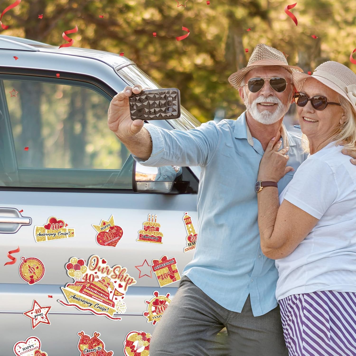 - đź’ŚCruise Door Magnets Decorations:You will get 16pcs of Red Gold 40th Anniversary Cruise Door Magnets.These 40th Anniversary Cruise Door Magnets have "40th Anniversary Cruise" and many shapes.With these beautiful 40th anniversary magnets decorations, they further set off a atmosphere of 40th anniversary.