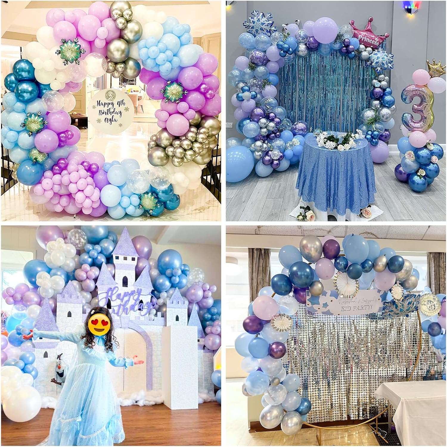 - Usage Scenarios: Perfect for winter wonderland decoration, princess party decorations, baby shower, anniversary, wedding, birthday decor, Christmas decorations, New Year, weddings, anniversary and more. You can also DIY the 12inch purple metallic balloons and store the purple blue balloon arch at home or office to add a romantic atmosphere to your outdoor or indoor parties, makes your winter themed party decorations attractive