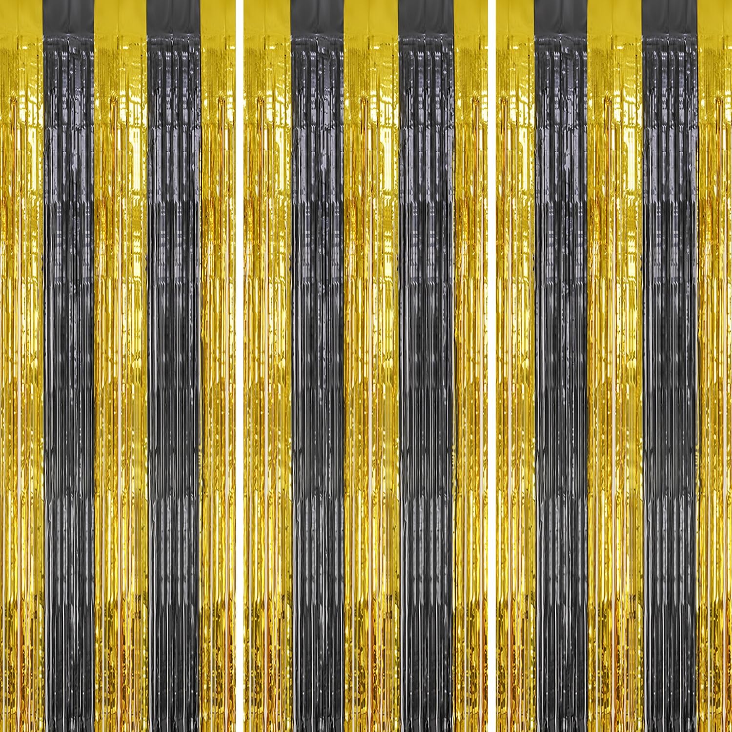 3 Pack Foil Fringe Backdrop - Black&Gold Shiny Tinsel Curtains for Party Decoration/Photo Booth Props - 3.3x8.2 FT Metallic Foil Backdrop for Birthday, Wedding, Graduation, Christmas.