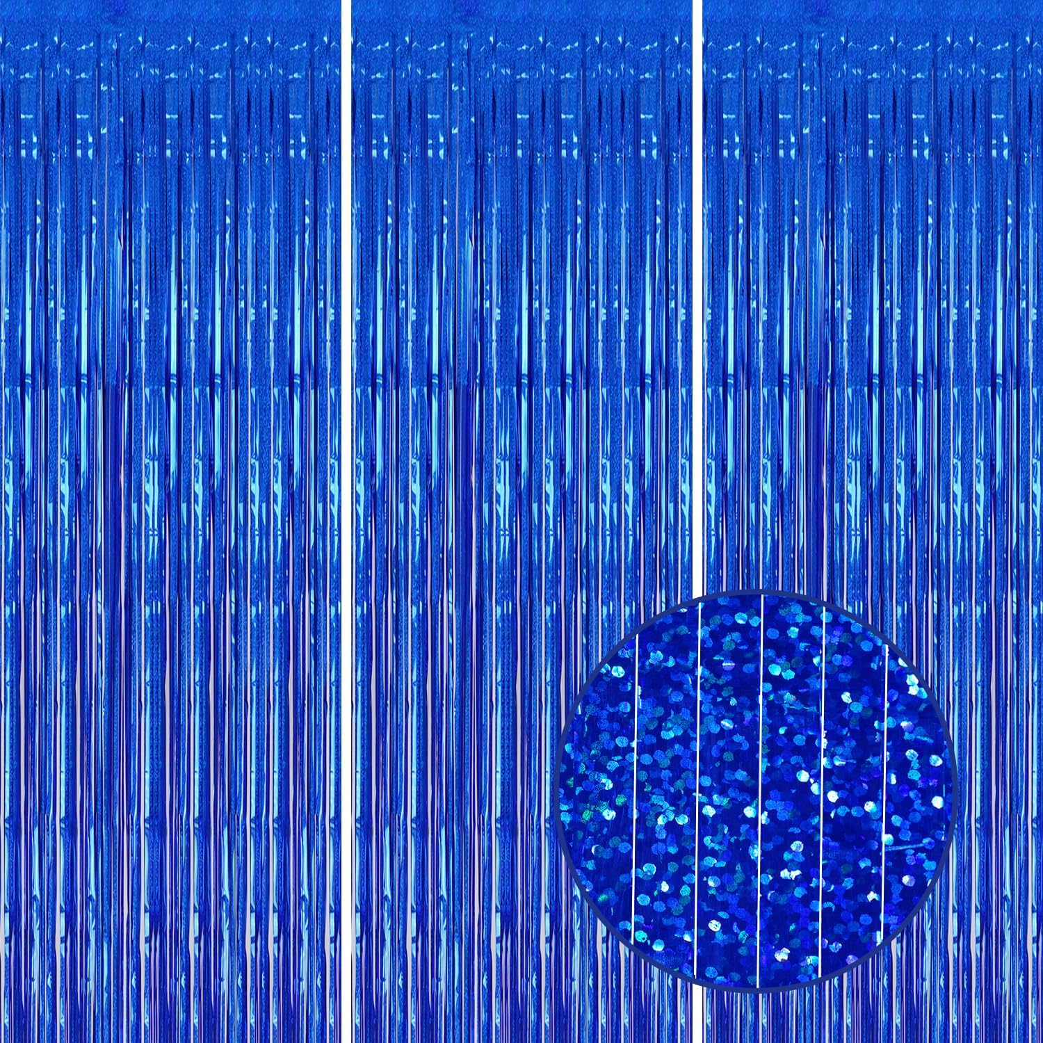 3 Pack Foil Fringe Backdrop - Laser Royal Blue Shiny Tinsel Curtains for Party Decoration/Photo Booth Props - 3.3x8.2 FT Metallic Foil Backdrop for Birthday, Wedding, Graduation, Christmas