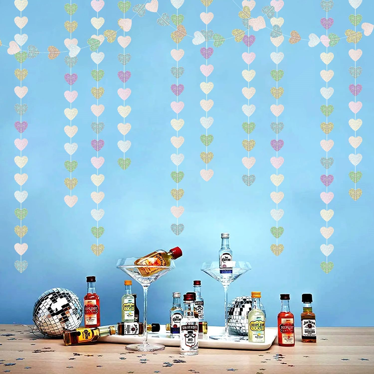 Iridescent Disco-Holographic Party-Decorations Heart Streamers-Garland - 52ft Glitter Dance Hanging Paper Banner, Wedding Bachelorette Birthday Euphoria Galentines Decor Hugfond