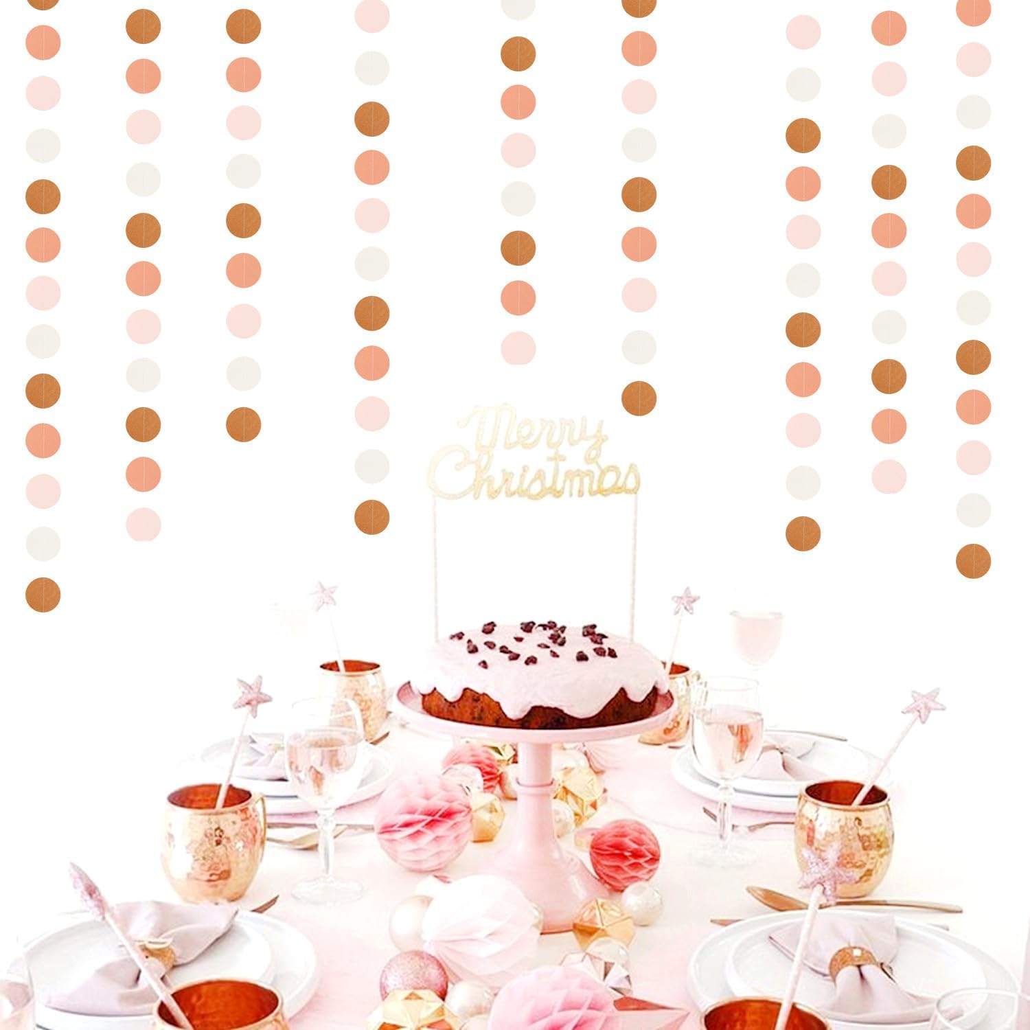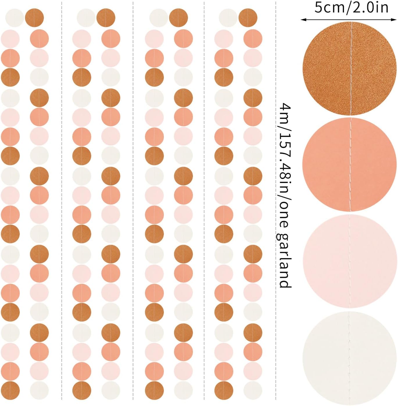 - 【Pink Brown Peach Party Decorations Kit Includes】The party garlands includes 4pcs paper garlands, each backdrop bunting is 13 feet/ 4 meters long, total length is 52 feet/16 meters. Every Banner has 40pcs dots which the size is 2".