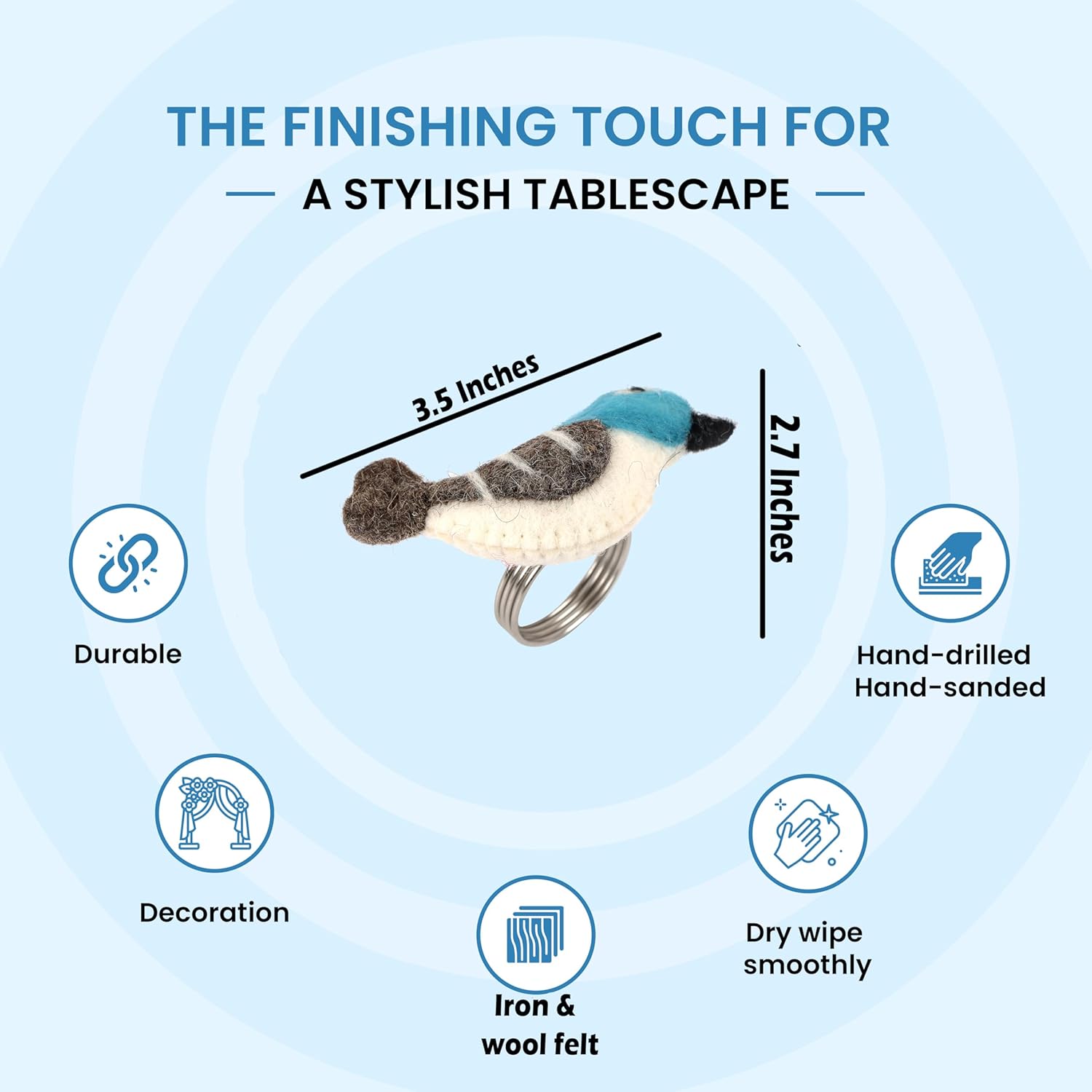 - MATERIALS: Made from soft wool felt for the bird shape, combined with a durable iron alloy ring.