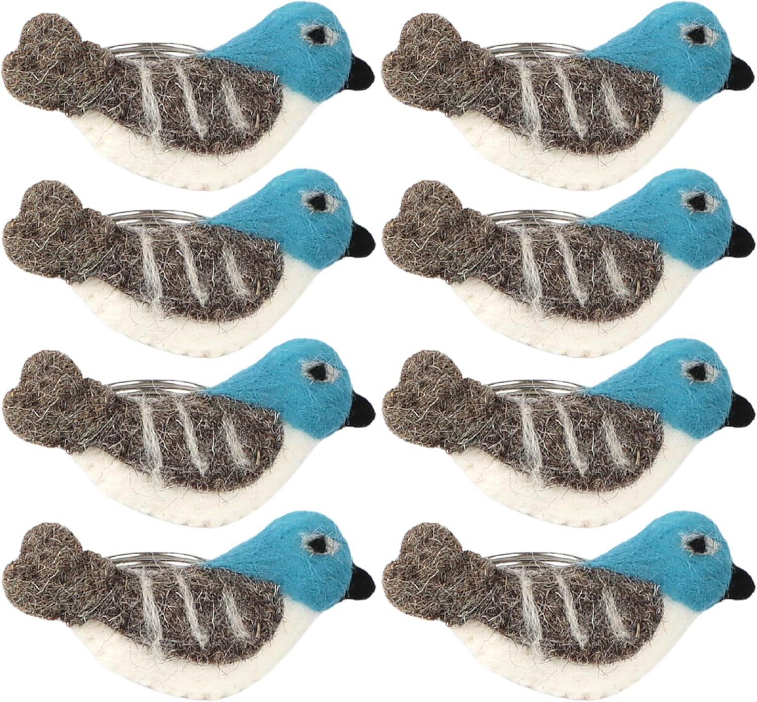 Wool Felt Napkin Ring Set of 8 - Bird Napkin Holder for Dining Table with Silver Electroplated Metal Base - Perfect for Spring, Holiday Parties, Rustic Event (White Blue Grey Black) - CLEENTABLE