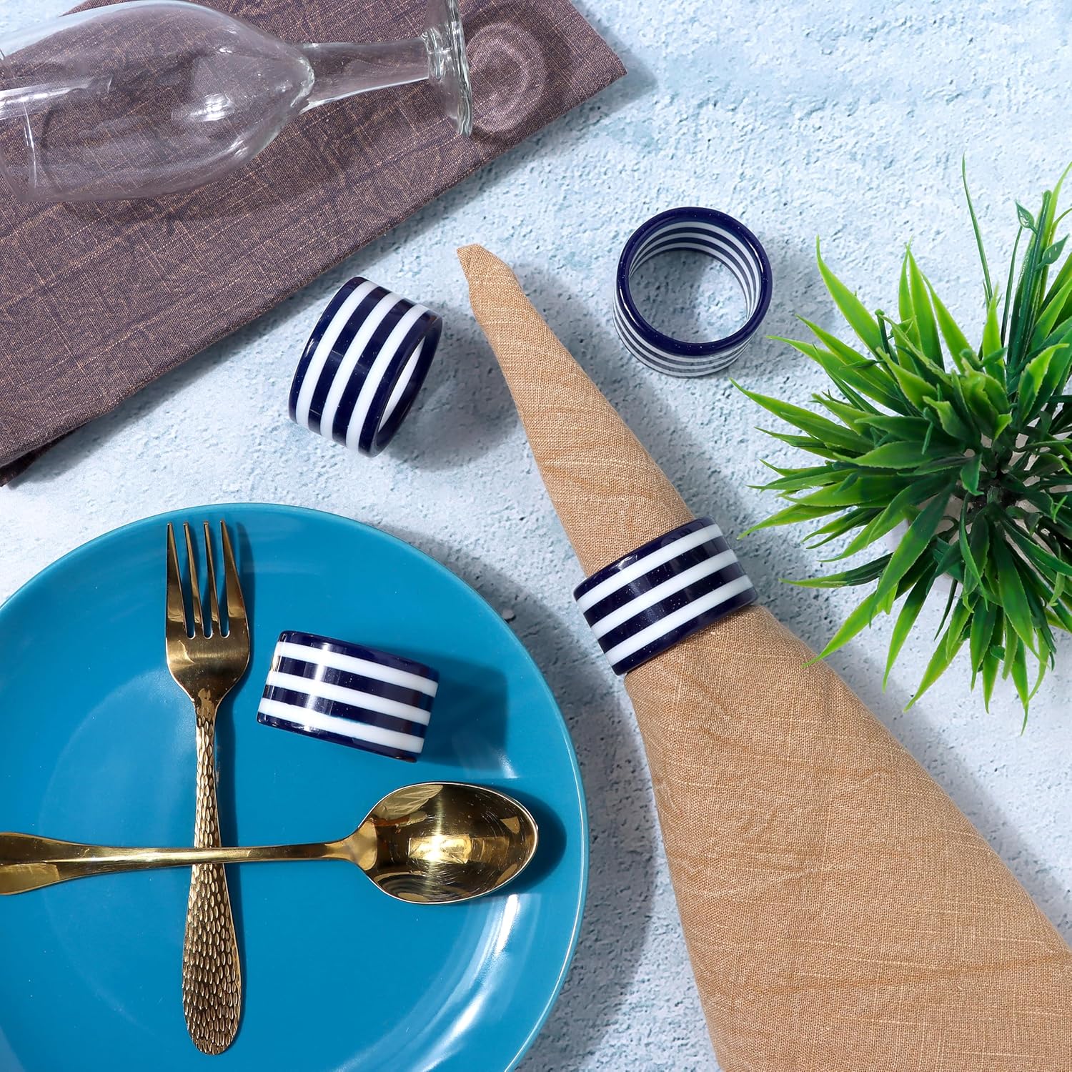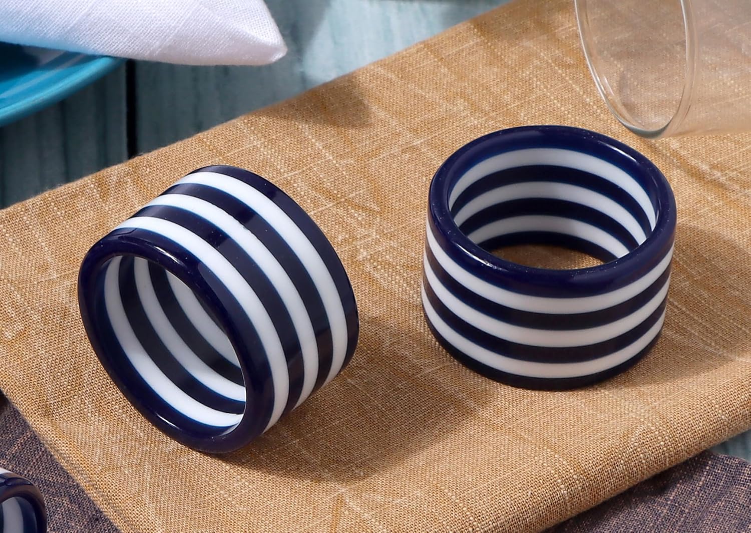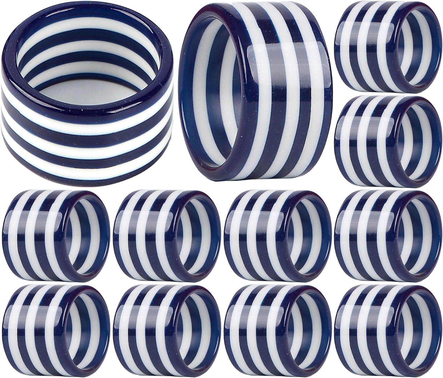 Set of 12 Epoxy Napkin Rings – Elegant Navy Blue & White Napkin Holders for Table Decor, Parties, Weddings & Dining - Modern Round Serviette Rings for Home & Holiday Celebrations - CLEENTABLE
