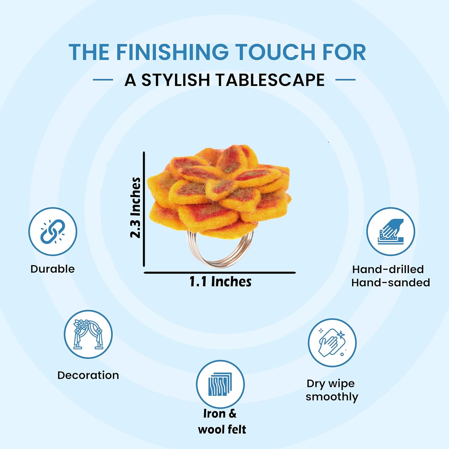 Wool Felt Napkin Ring Set of 8 - Elegant Flower Spring & Farmhouse Table Décor with Silver Electroplated Metal Alloy Base - Perfect for Banquet Table Decor & Daily Use (Multi) - CLEENTABLE