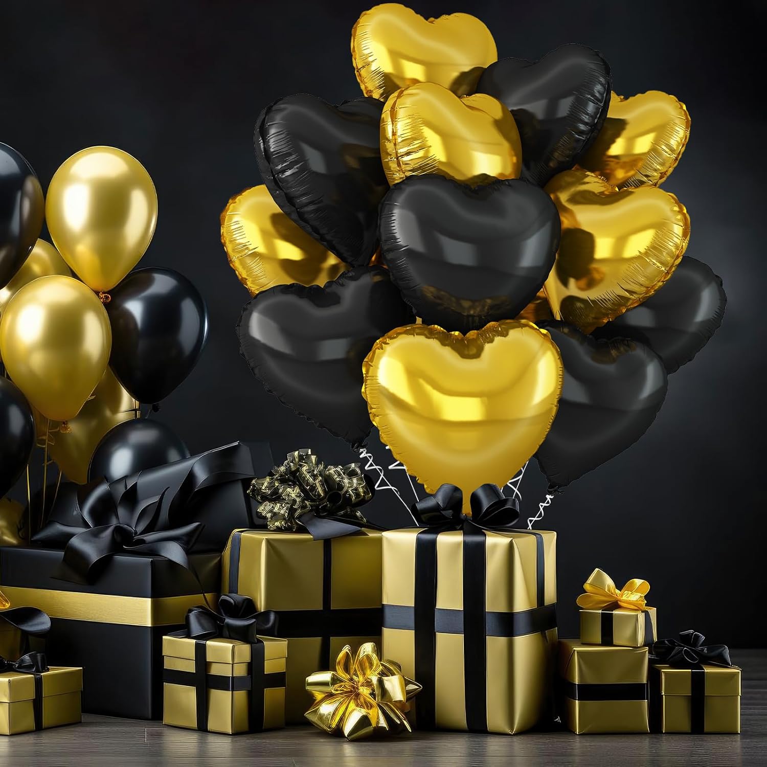 - 【WIDELY APPLICATION】This black gold heart balloon can be used for a variety of occasions,such as birthday,Father's Day,anniversary,Valentine's Day,baby shower,gender reveal,weddings,engagement,bridal shower,marriage proposals and other parties,can also be used as a photo background,etc.Make a deep impression on the party guests.