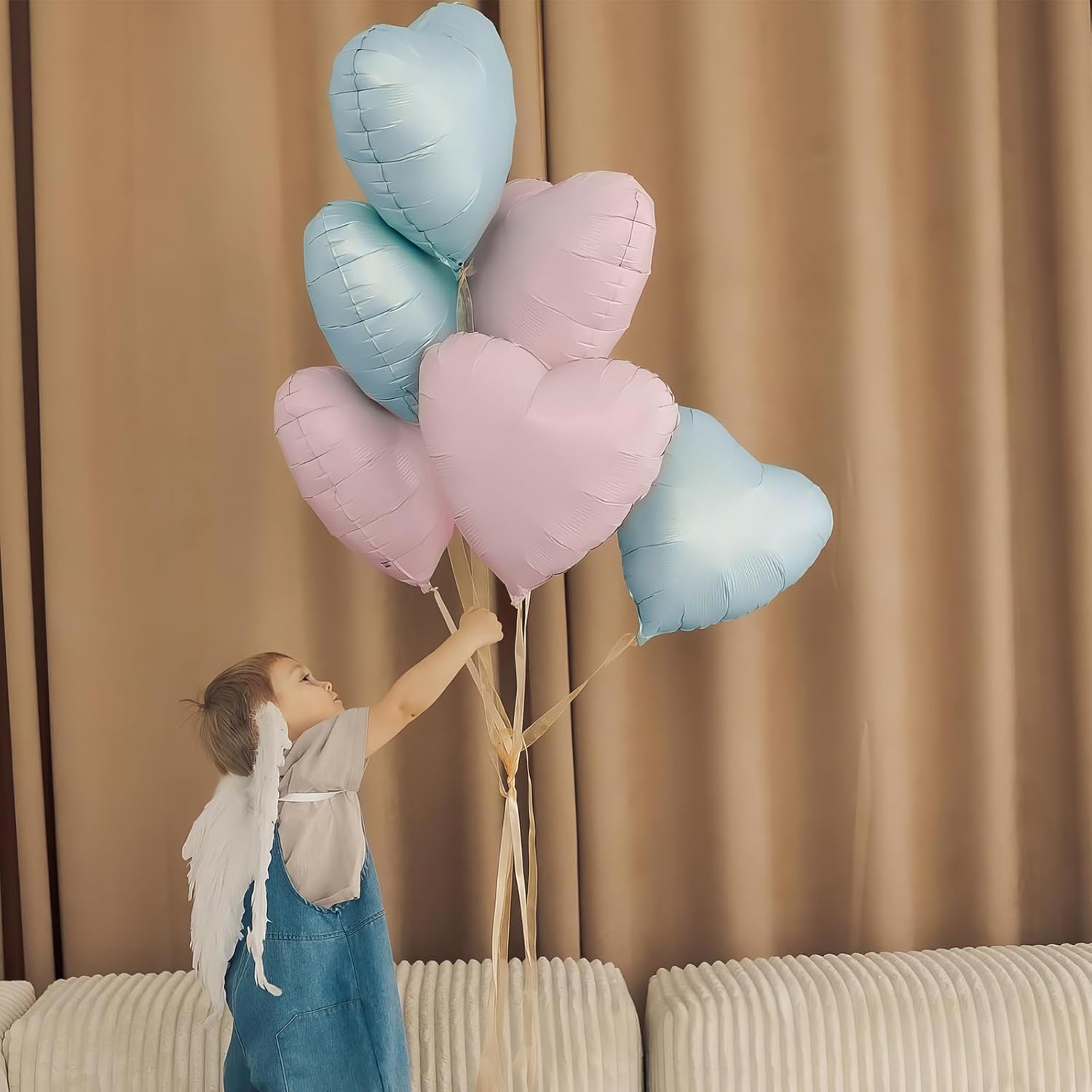 Pink Blue Heart Balloons,12Pcs Baby Pink Heart Shaped Foil Balloons,18Inch Pastel Blue Helium Balloon for Baby Shower Birthday Anniversary Wedding Party Decorations