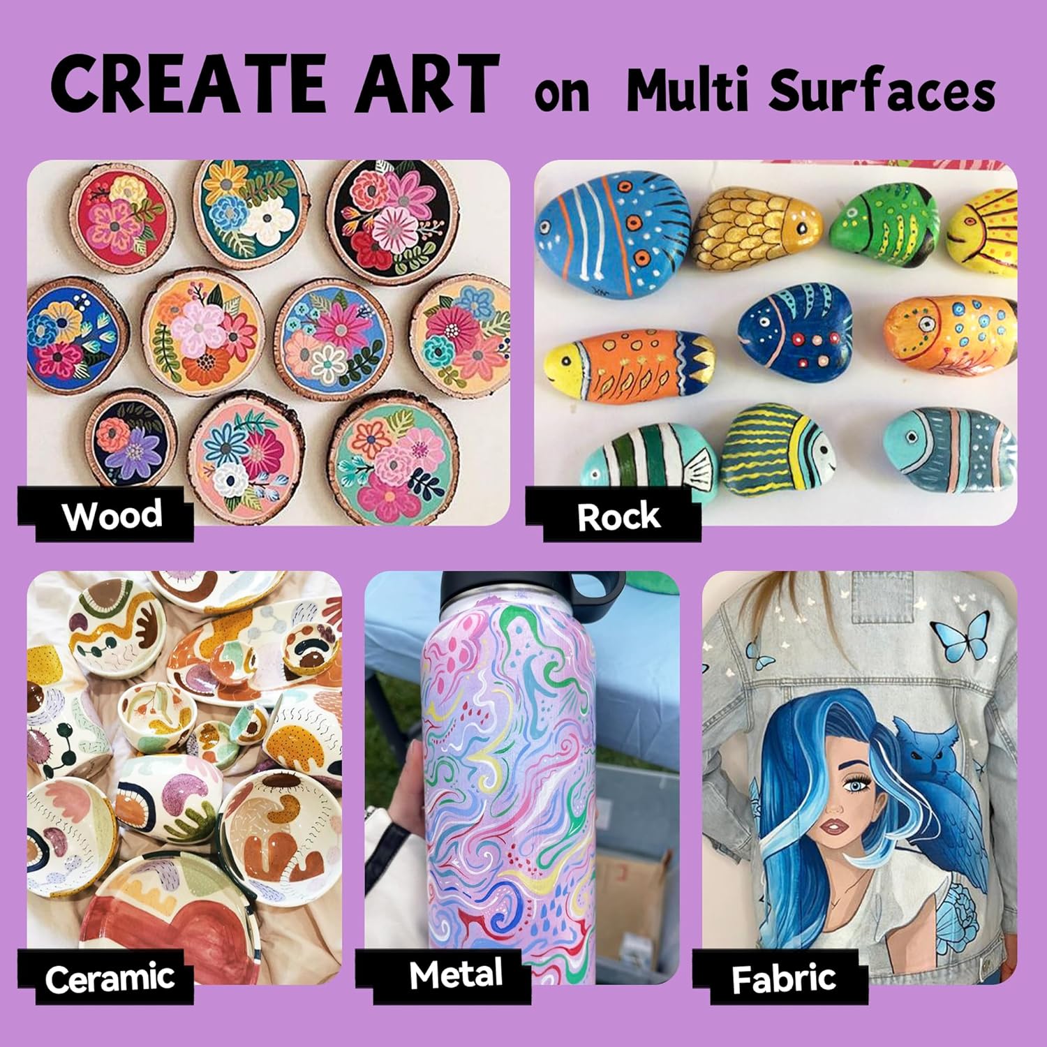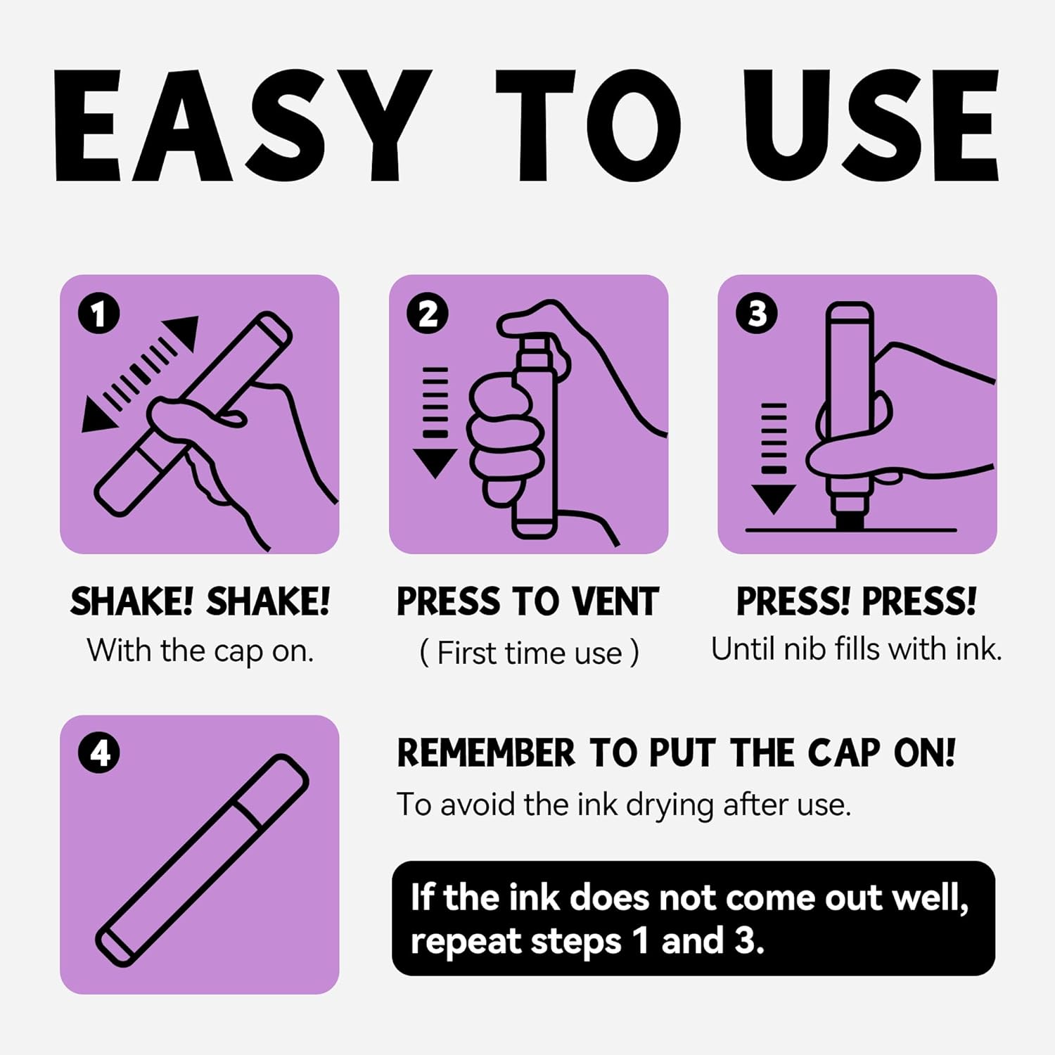- Non-Toxic and Safe โ SRUOLOC paint markers are non-toxic, Each thick permanent marker meets ASTM d-4236 and EN-71 safety standards, are suitable for artists of all ages, working seamlessly on rock, fabric, glass, wood, plastic, paper, and more