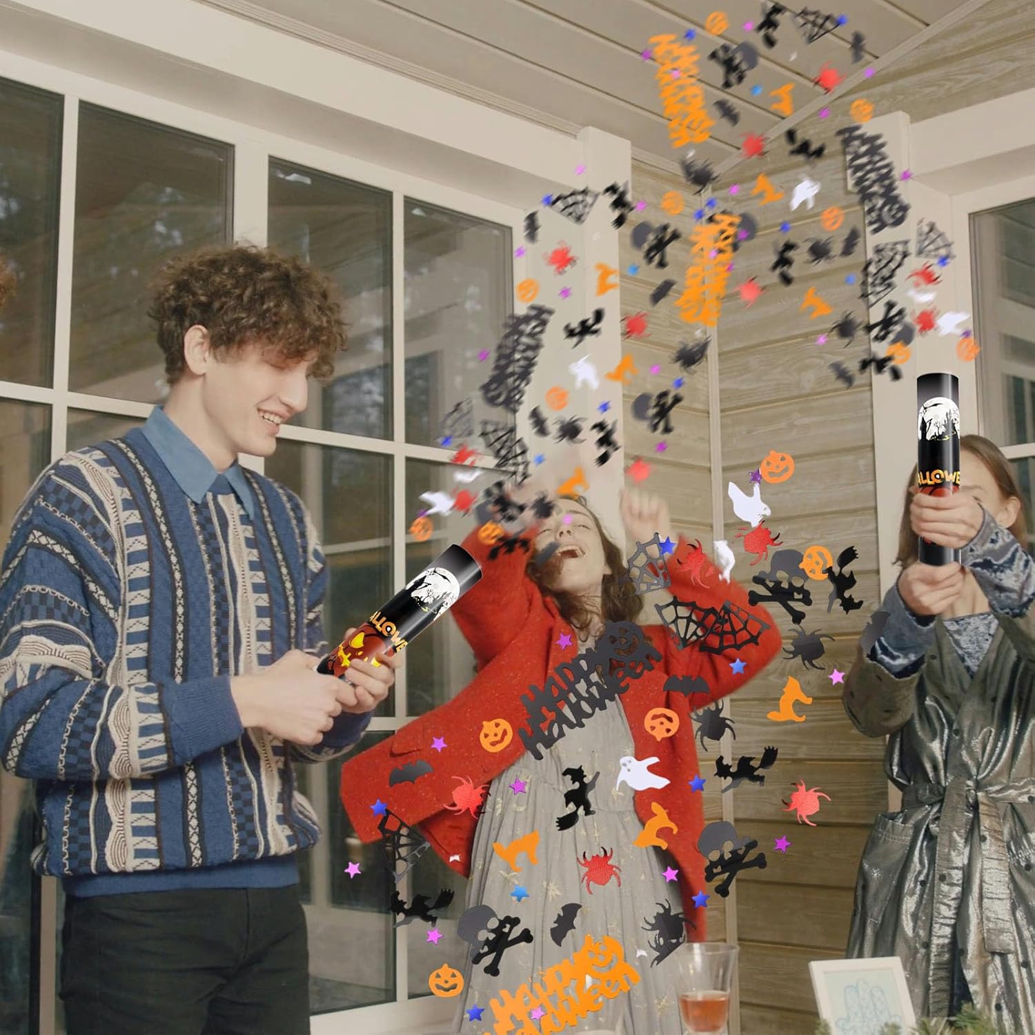 - 【Halloween Confetti Poppers】The use of confetti cannons is a vibrant and festive addition to Halloween occasions. The sudden burst of colorful paper shards creates a joyful atmosphere, surprising and delighting guests. Whether indoors or outdoors, confetti cannons are a safe and effective way to make any special day even more memorable.