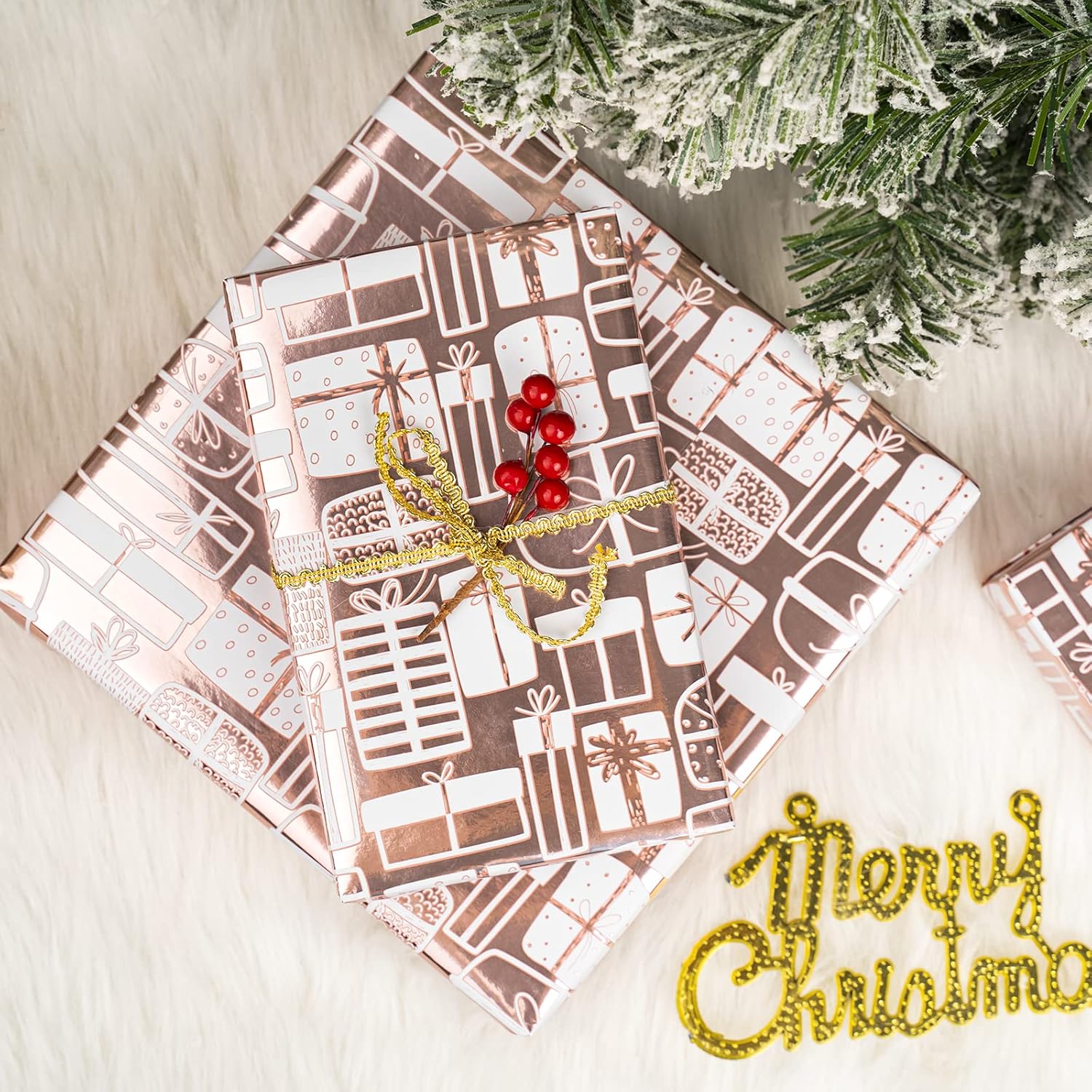 - METALLIC SHINE: Rose gold present design with metallic shine make sure every gift you give has an elegant touch by creating gift wrapping in this wonderful wrapping paper.