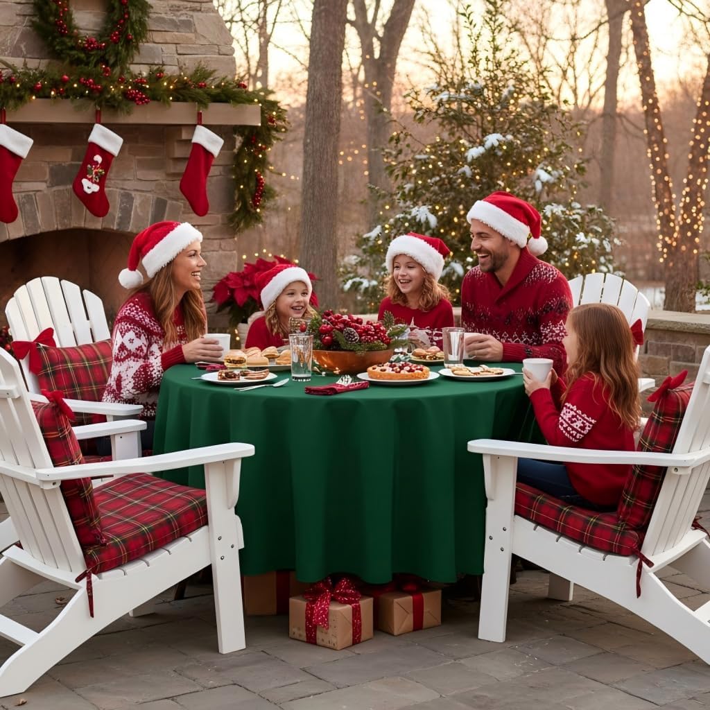 sancua Round Tablecloth - 90 Inch - Water Resistant Spill Proof Washable Polyester Table Cloth Decorative Fabric Table Cover for Dining Tables, Buffet Parties and Camping, Hunter Green