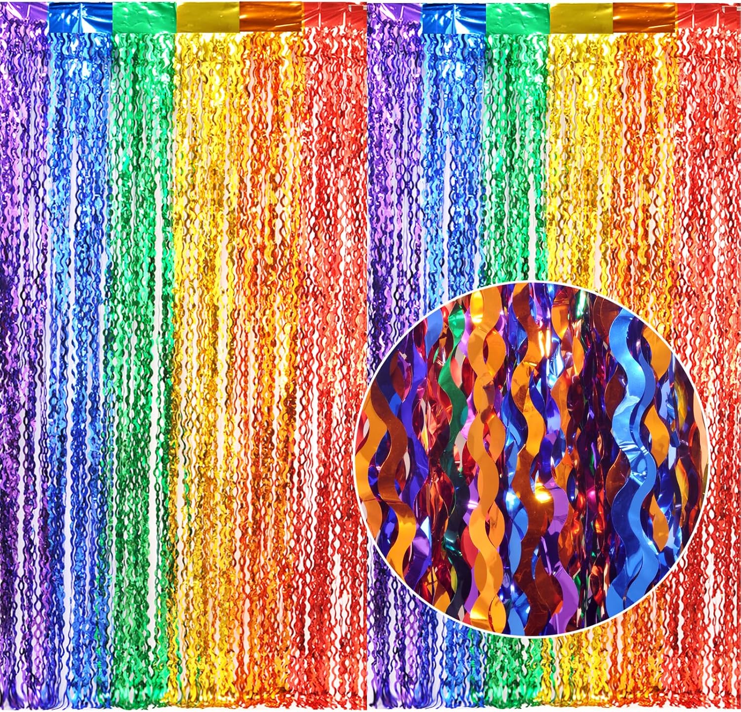 - Packing Included:3 packs rainbow tinsel foil fringe curtains party photo backdrop,Each pack curtains size is 3.3ft x 6.6ft, enough length for decorate your party