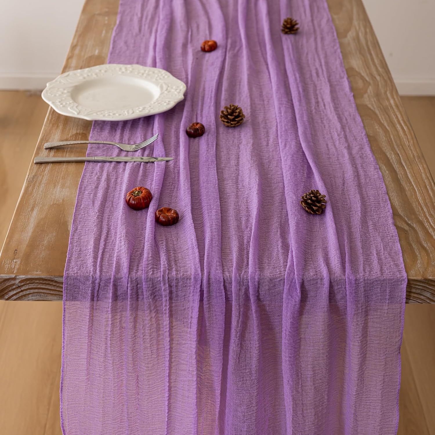 6pcs Lilac Gauze Rustic Cheesecloth Table Runner 120 Inch 10 FT for Wedding Baby Shower Bridal Shower Birthday Engagement Garden Outdoor Party Long Sheer Boho Decorations