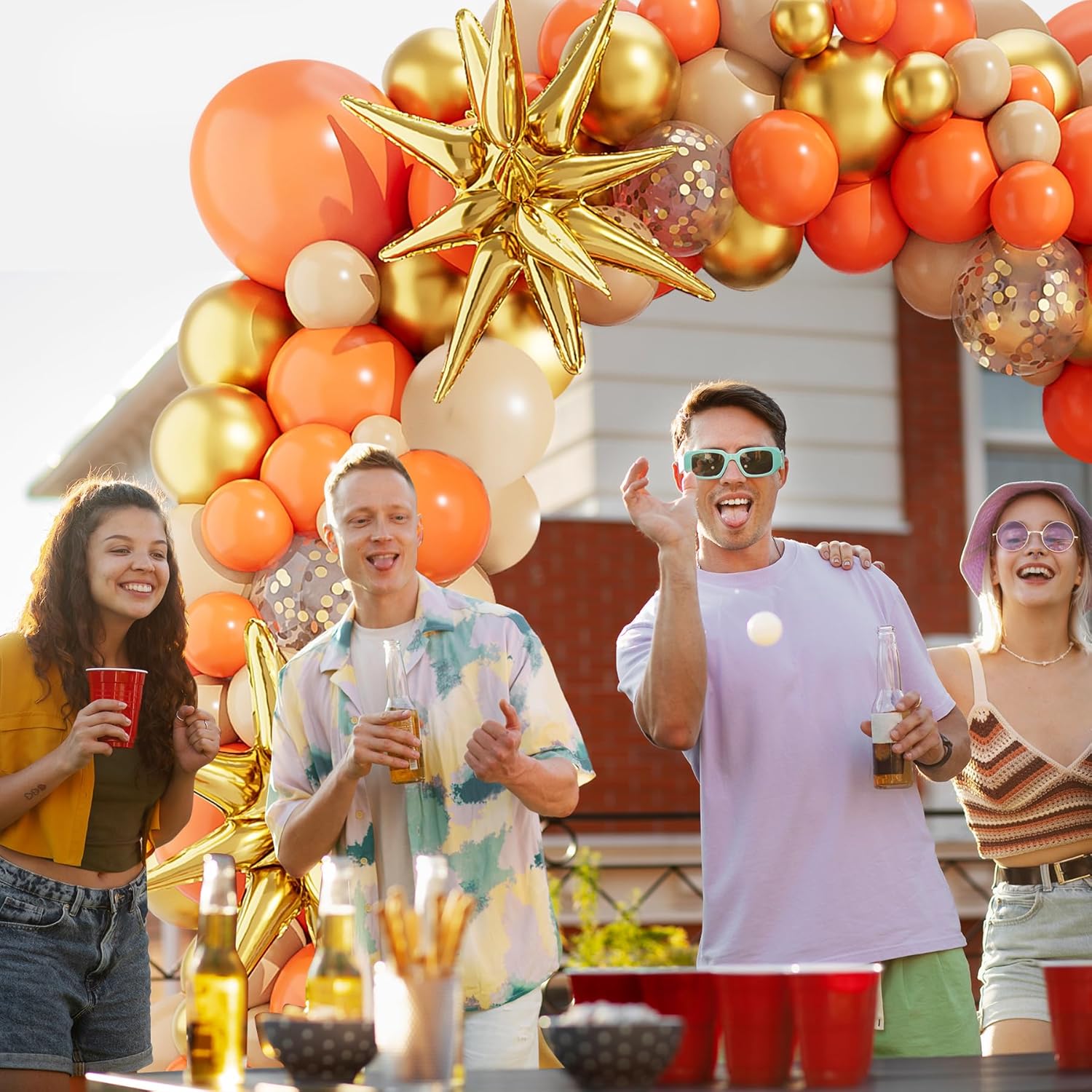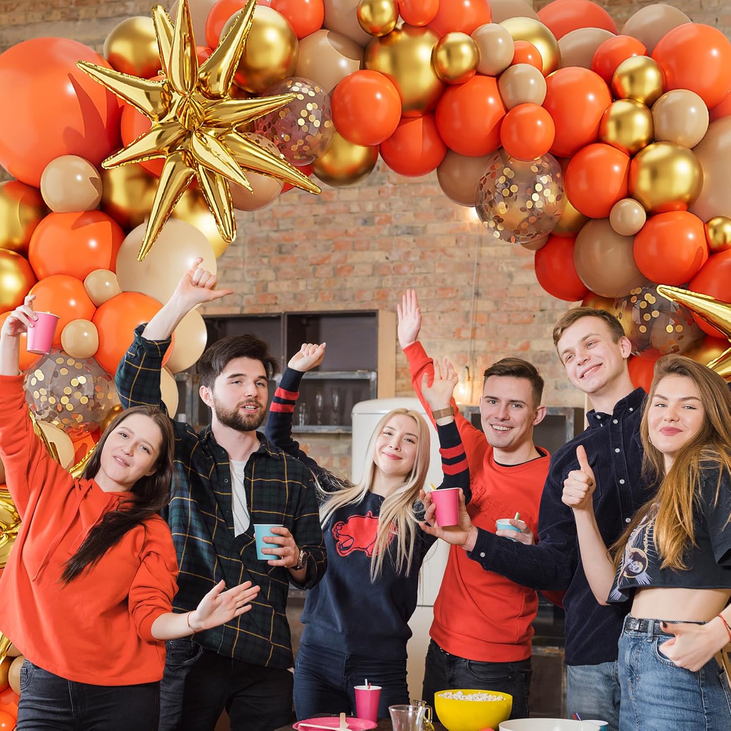 - 【Package Include】- The orange balloon arch kit includes gold starburst balloons 22”3pcs,orange balloons(18”2pcs+10”30pcs+5”20pcs),nude balloons(18”1pcs+10”20pcs+5”15pcs),metallic gold balloons(18”1pcs+10”20pcs+5”10pcs),gold confetti balloons 12”5pcs,balloon glue dot;balloon decorating strip.